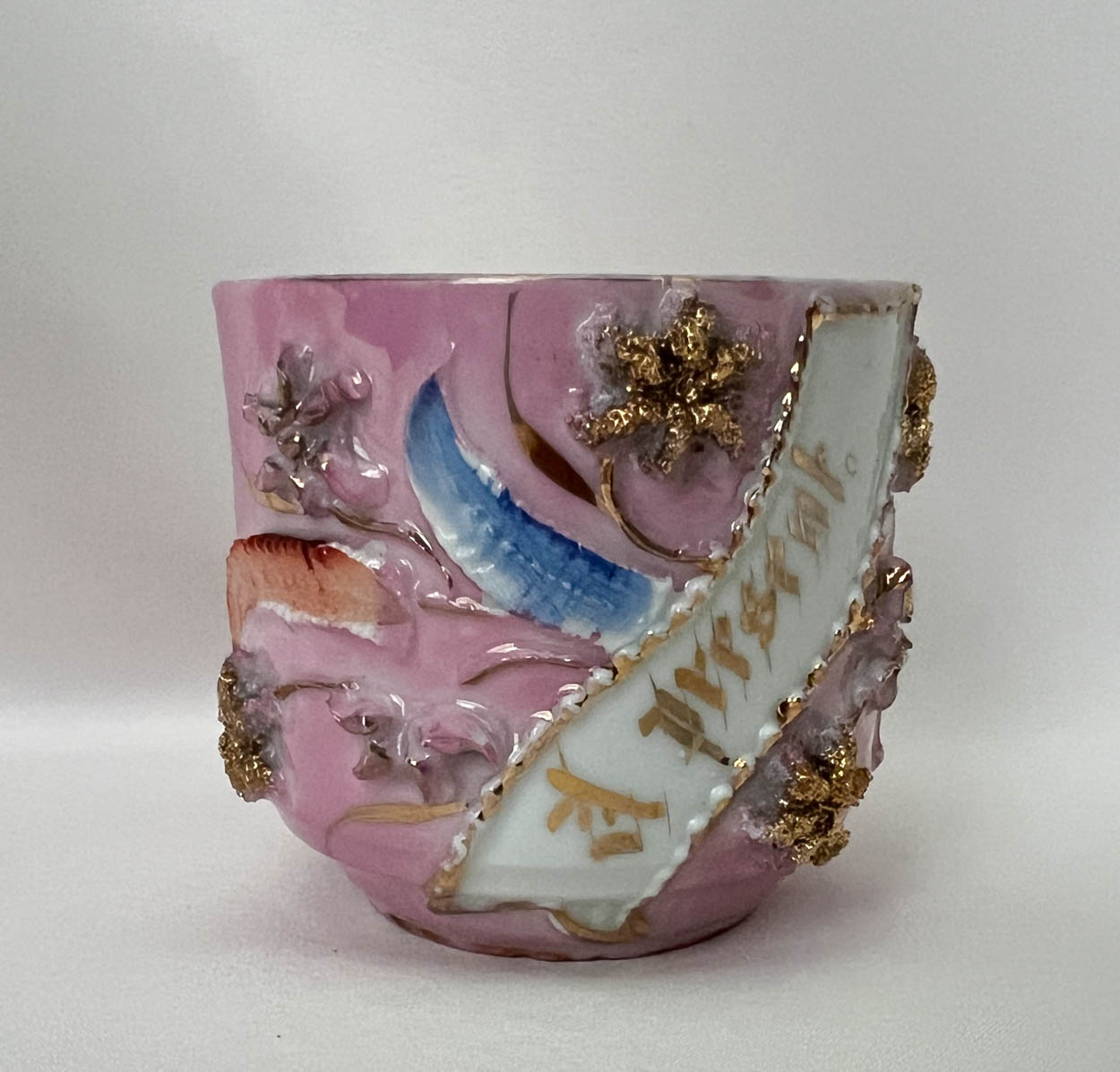 The mug is fabulous. It is high relief with gilt accents. The high relief is very deep.