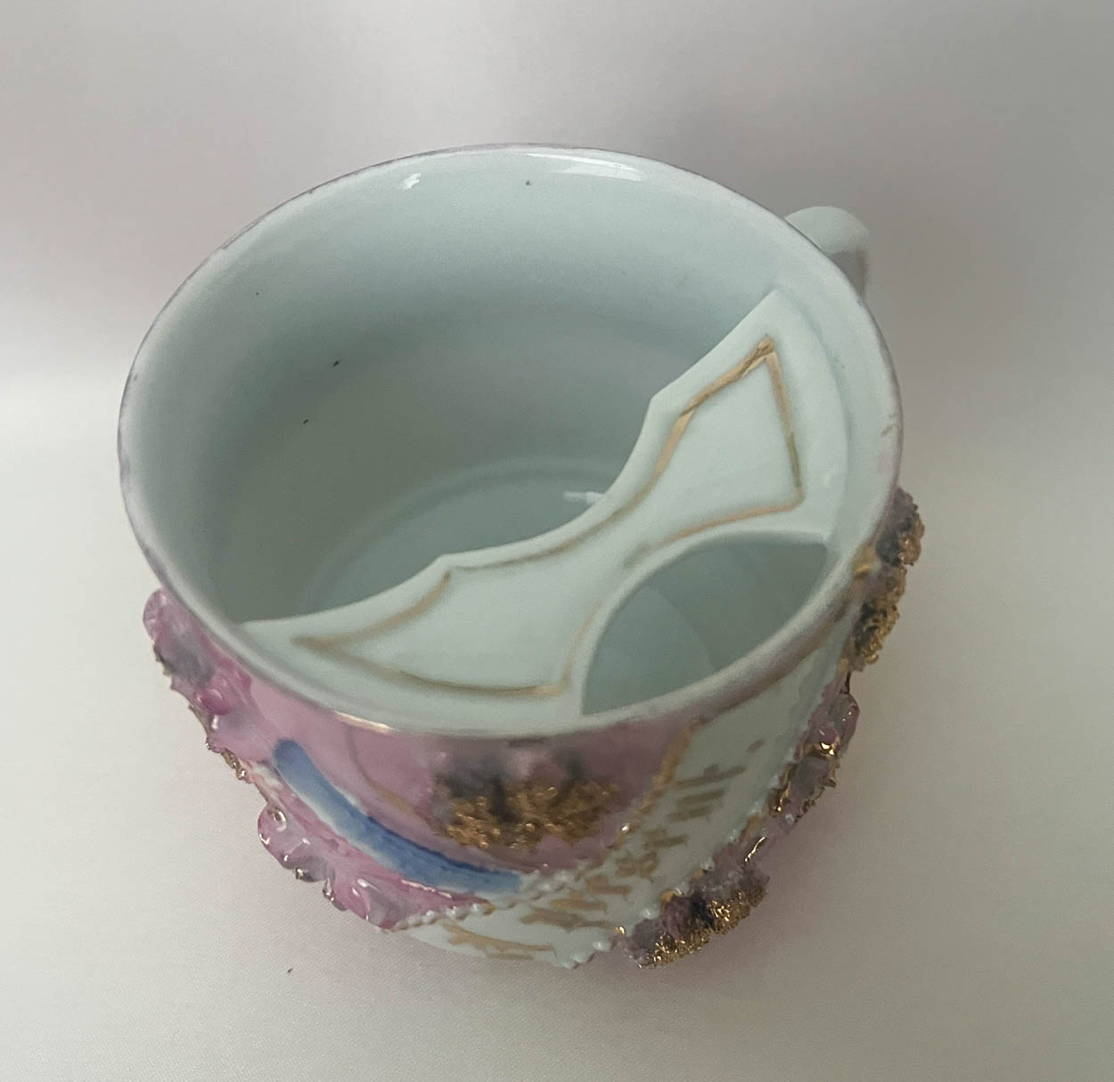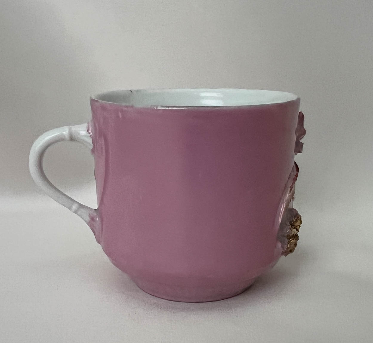 Wonderful antique pink shaving mug. This could also have been used for drinking as there is a mustache guard on the inside.