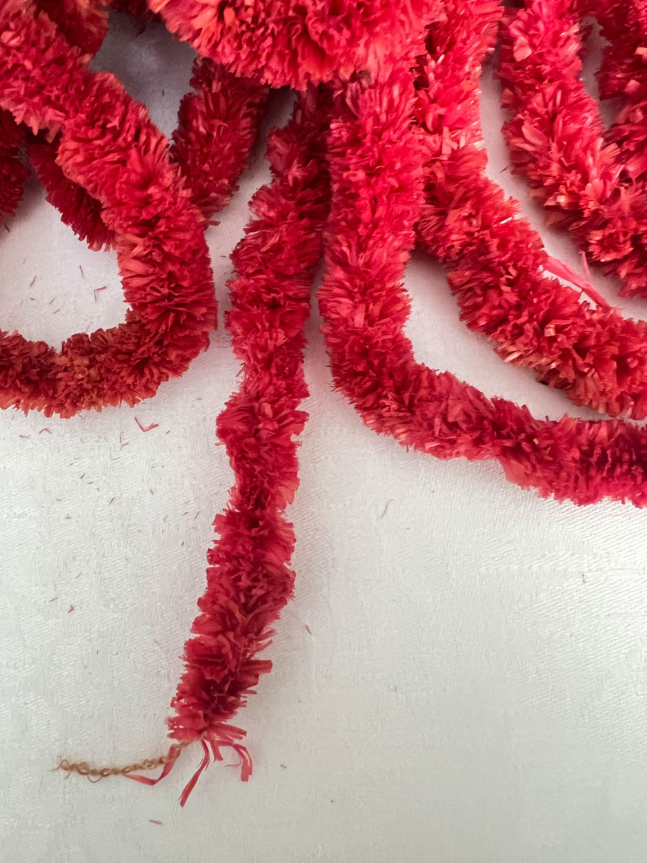 Wonderful find of yards and yards of 1940's crepe paper red Christmas garland.