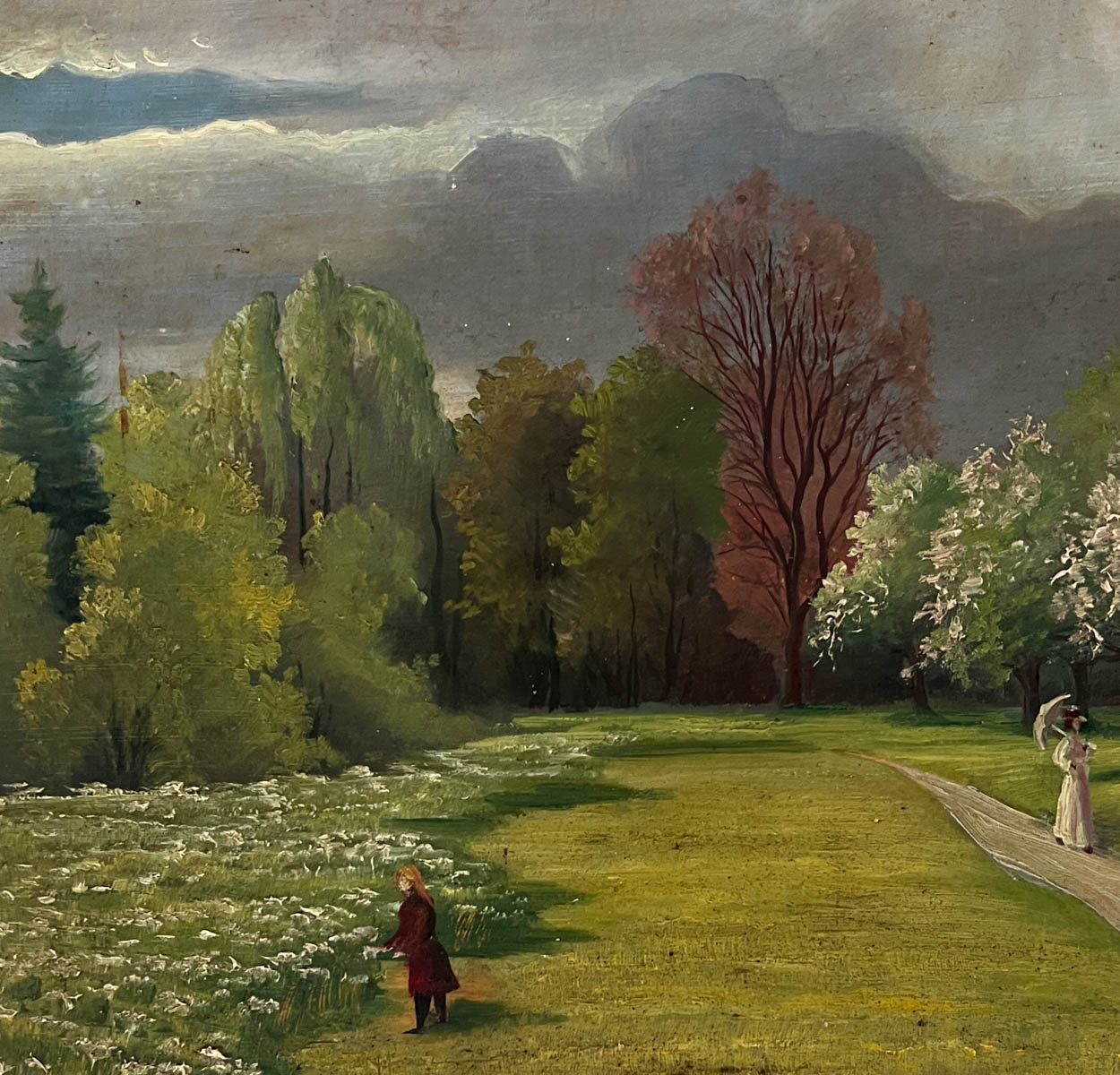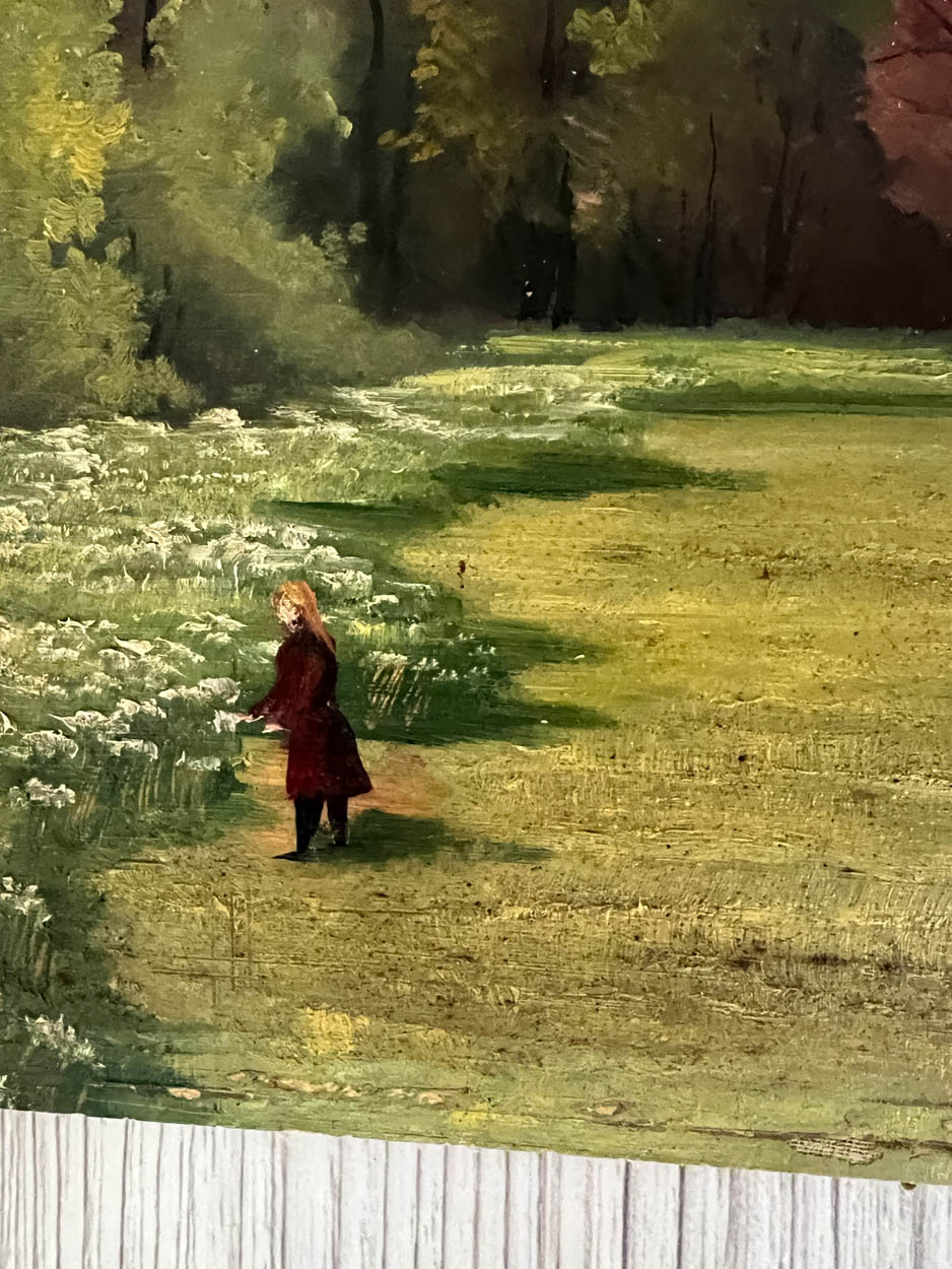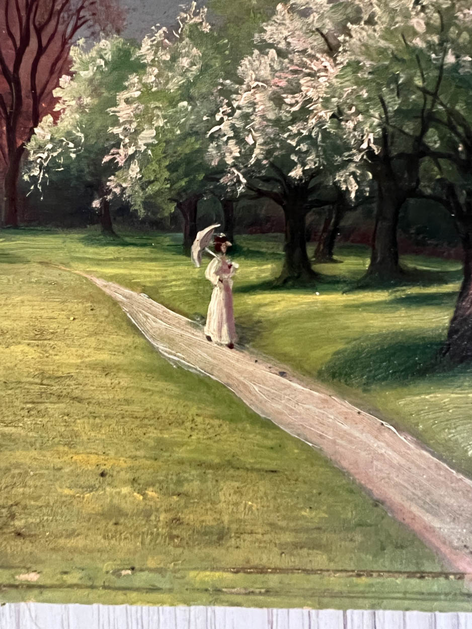 This oil has the most beautiful detail and colors. You can even see women strolling. We love the woman with the umbrella.