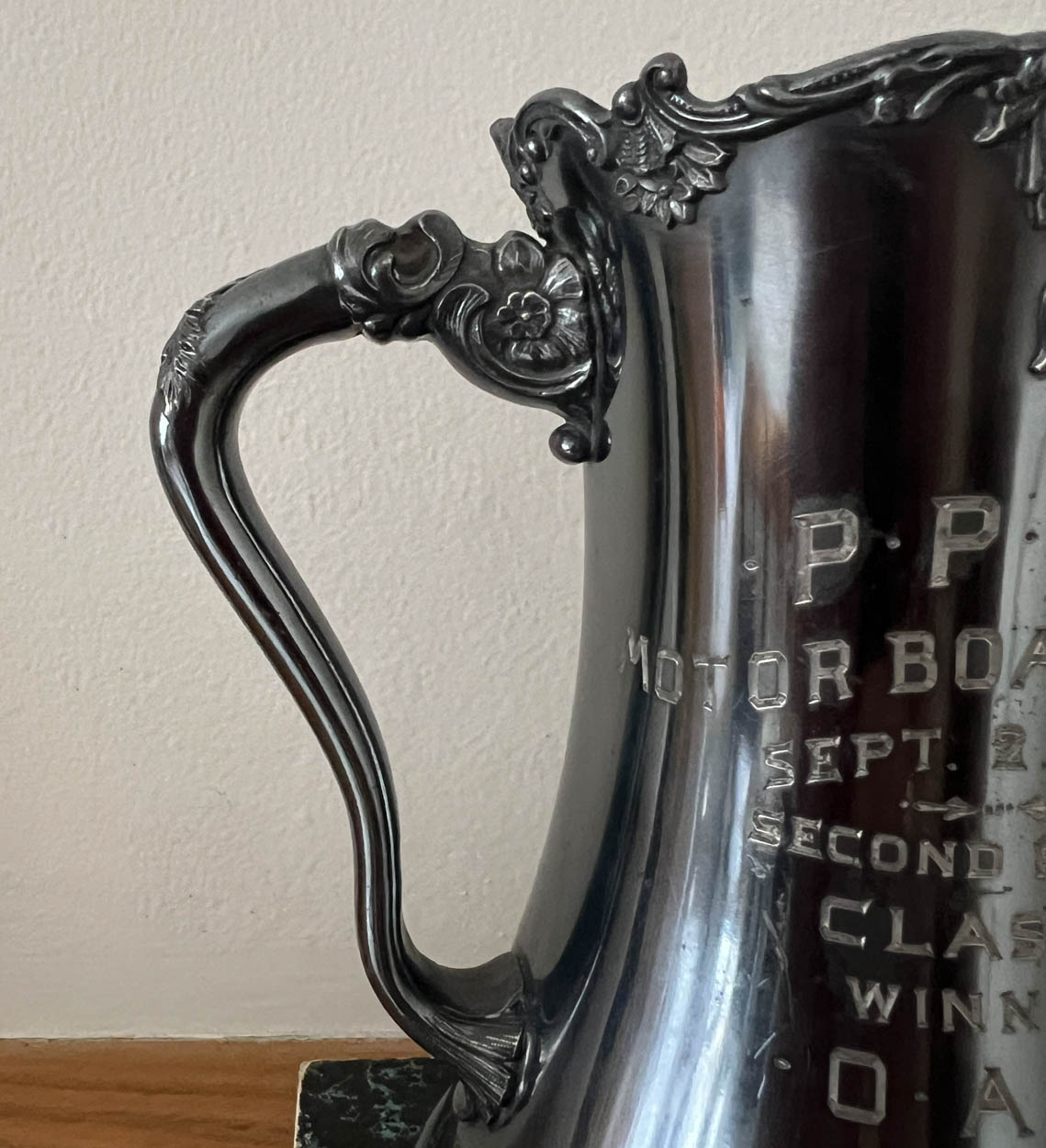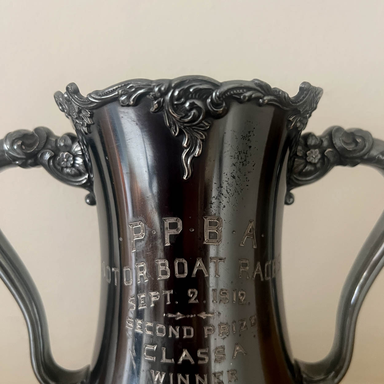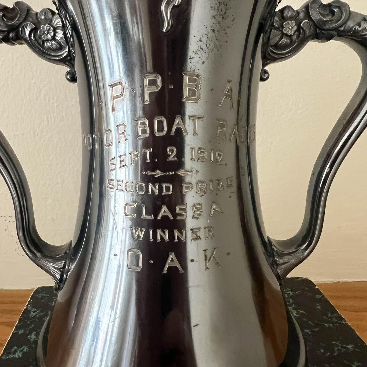 The trophy is inscribed, "P.P.B.A. MOTORBOAT RACES SEPT. 2 1912 - SECOND PRIZE CLASS A WINNER O.A.K."