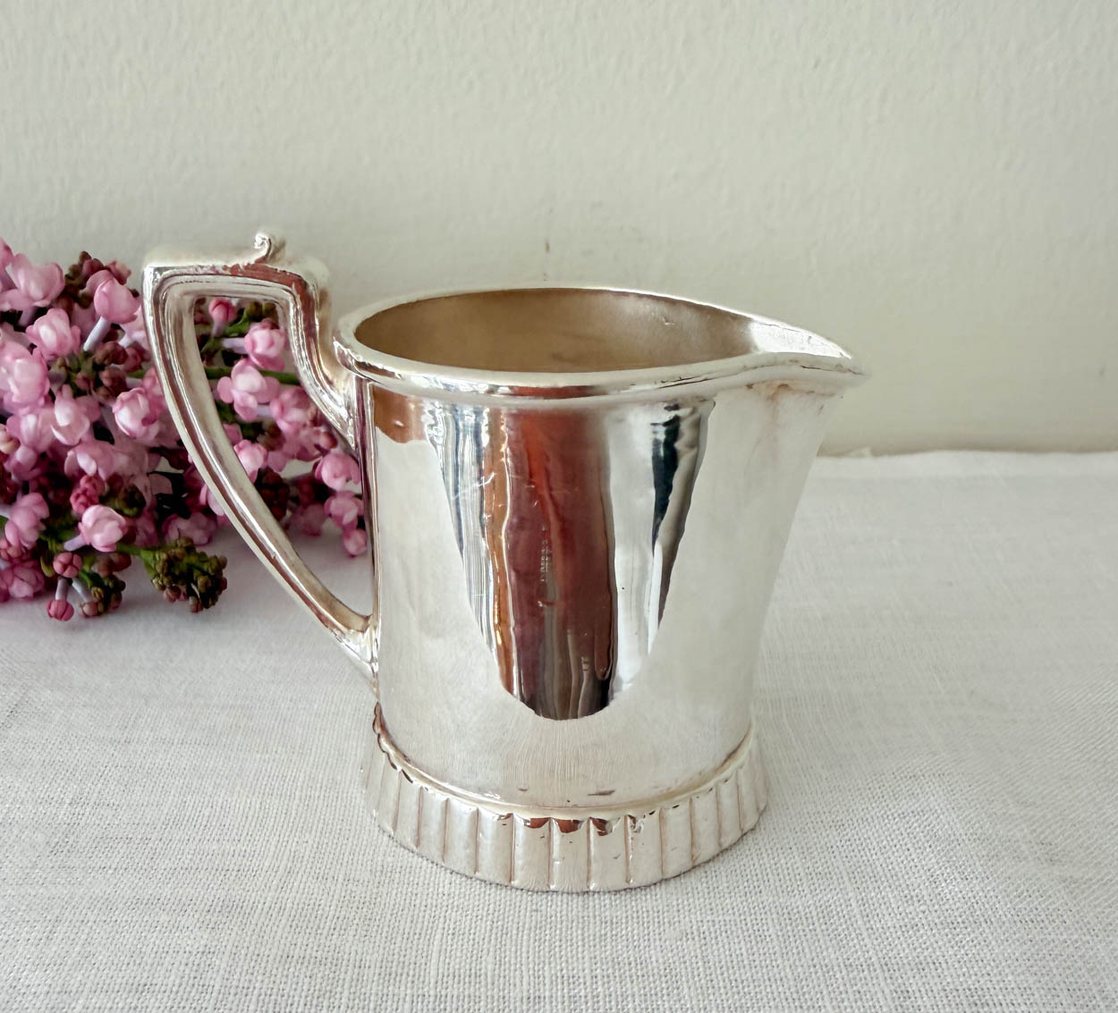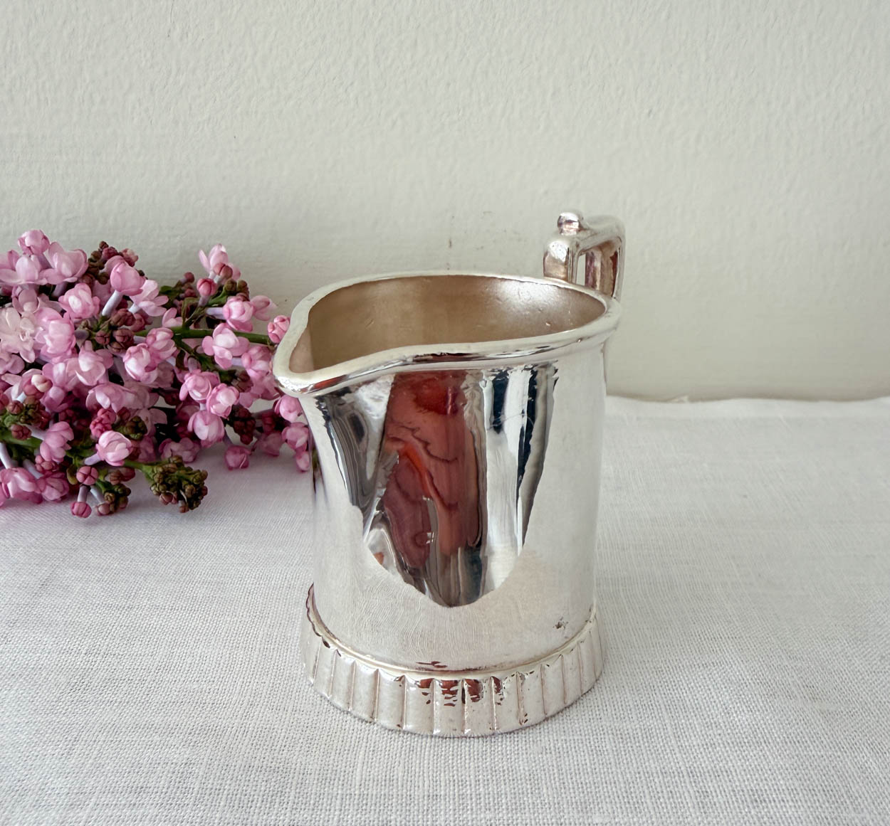 The creamer appears to be replated and has a gleaming bright patina and a re-plated interior.