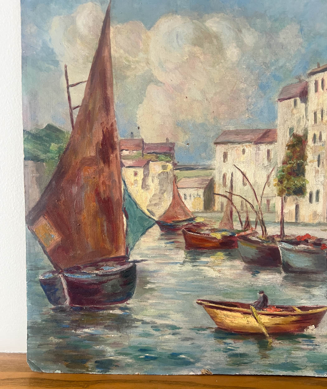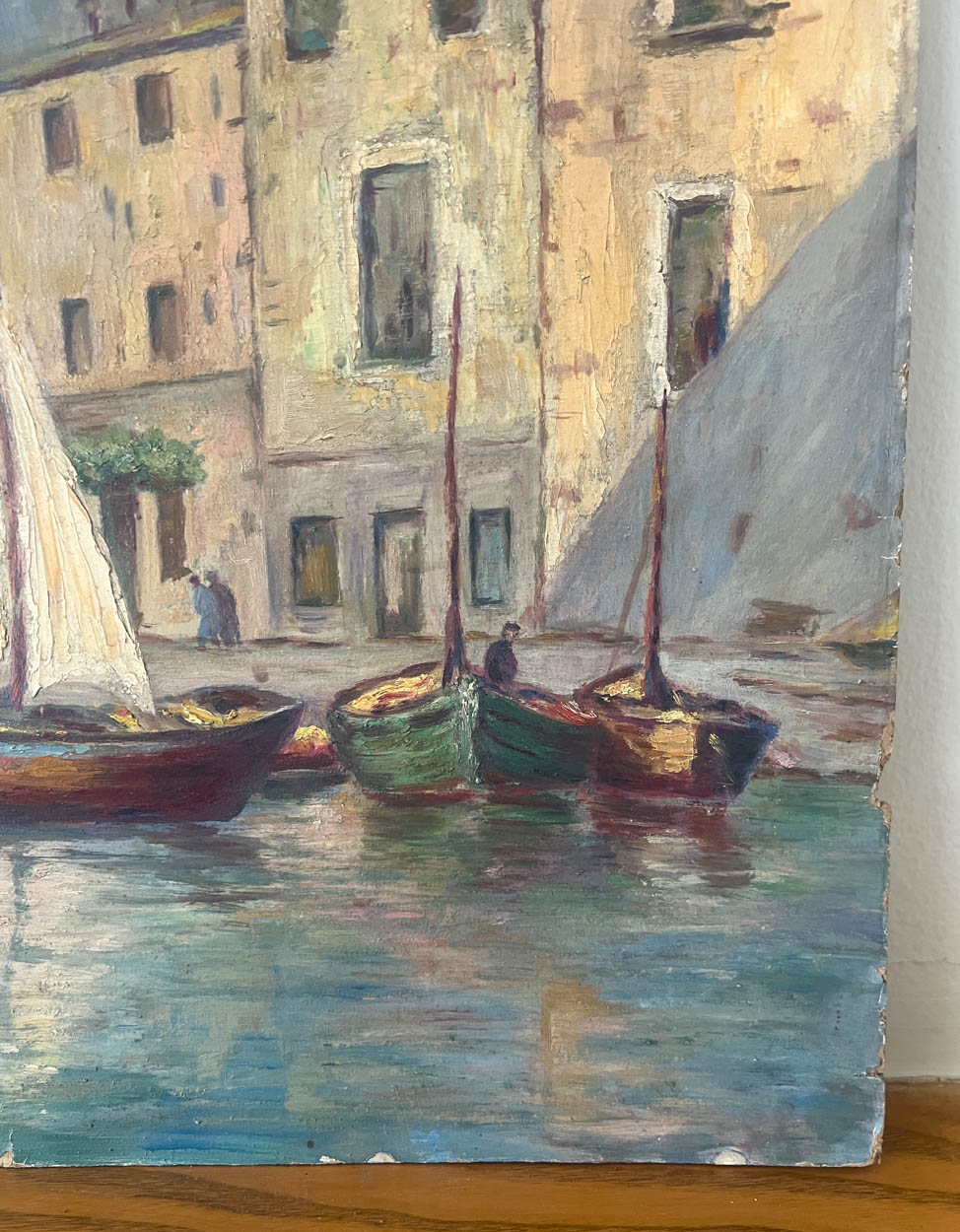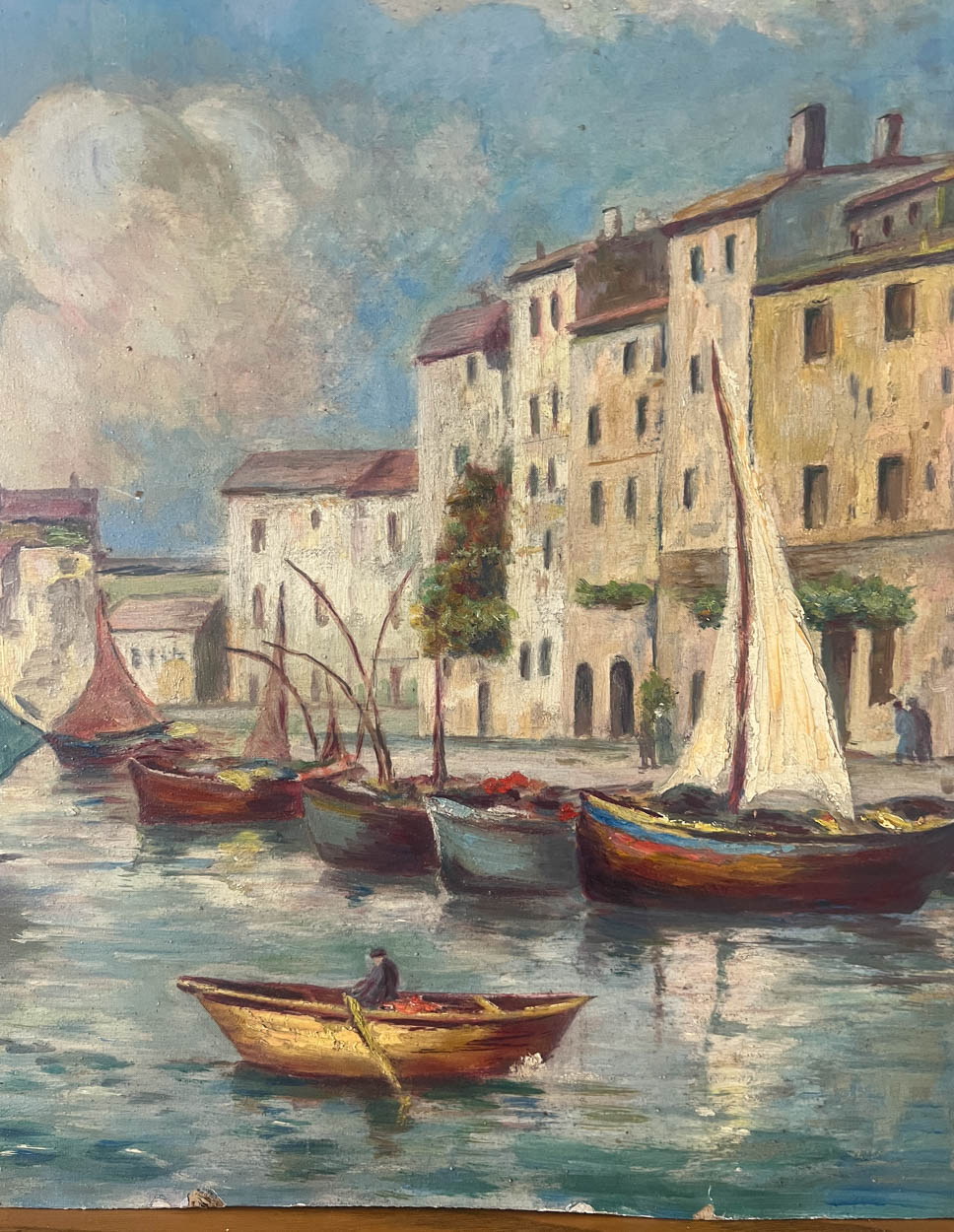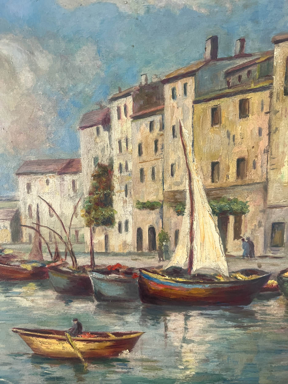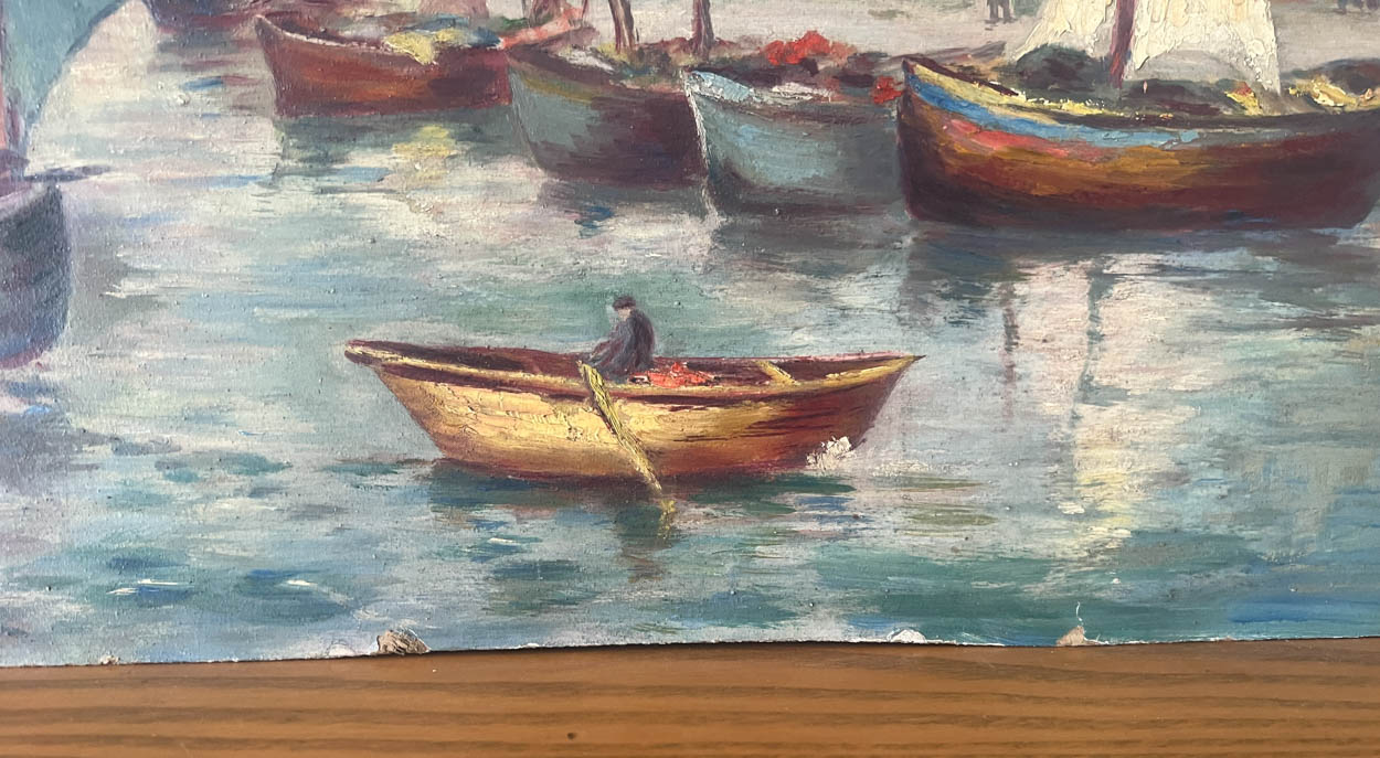 Acquired in France, a beautiful, colorful c. 1930s oil painting of boats.