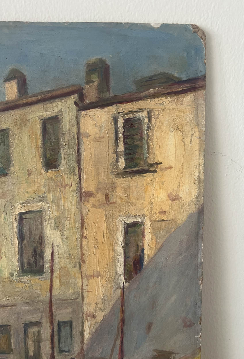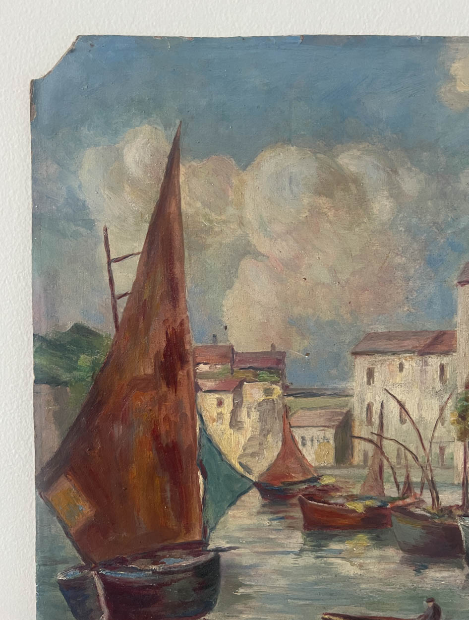 1930s French Boats Oil Painting on Board