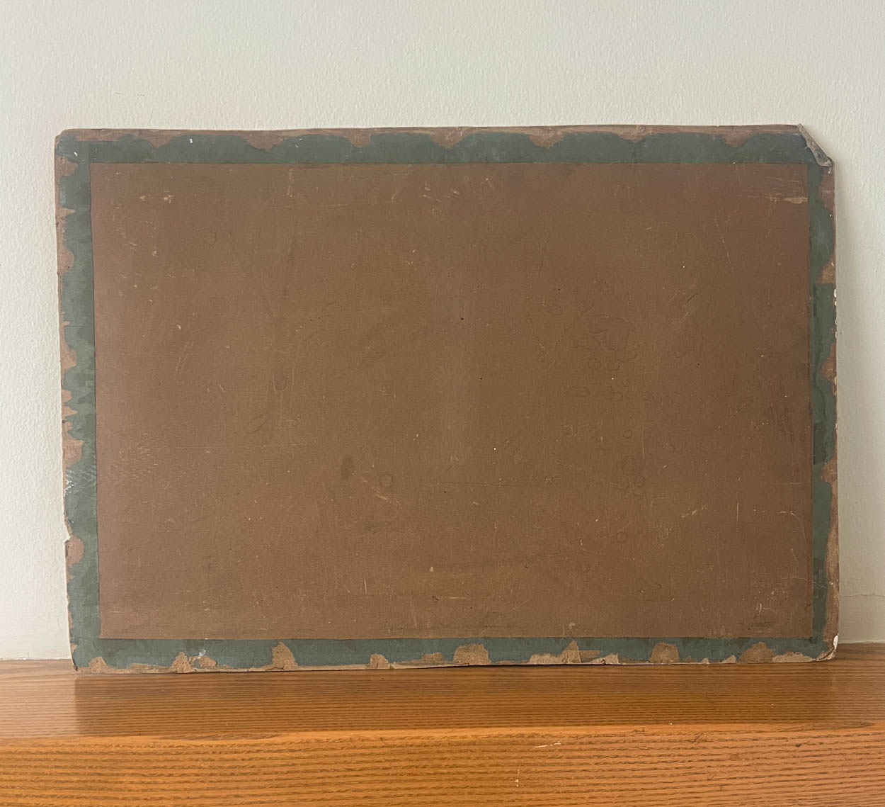 It measures 24" by 17". There is a chip to the cardboard in the upper right hand corner and some other areas of wear. This does not affect its aged beauty.