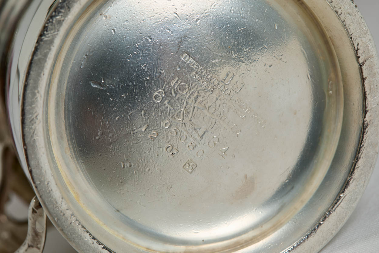 Manufactured by International Silver Company and stamped, "HOTEL STATLER". It is dated 1955.