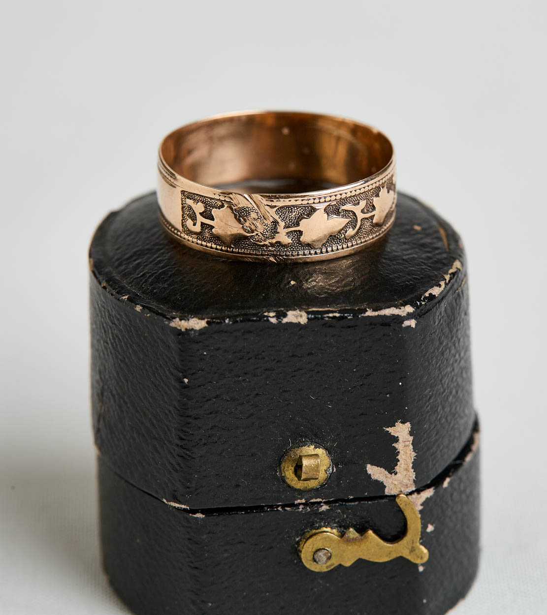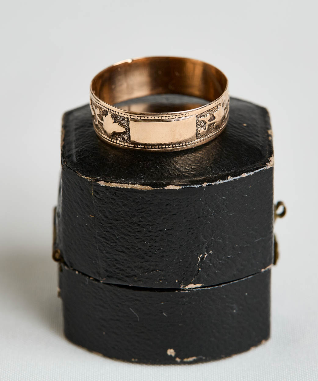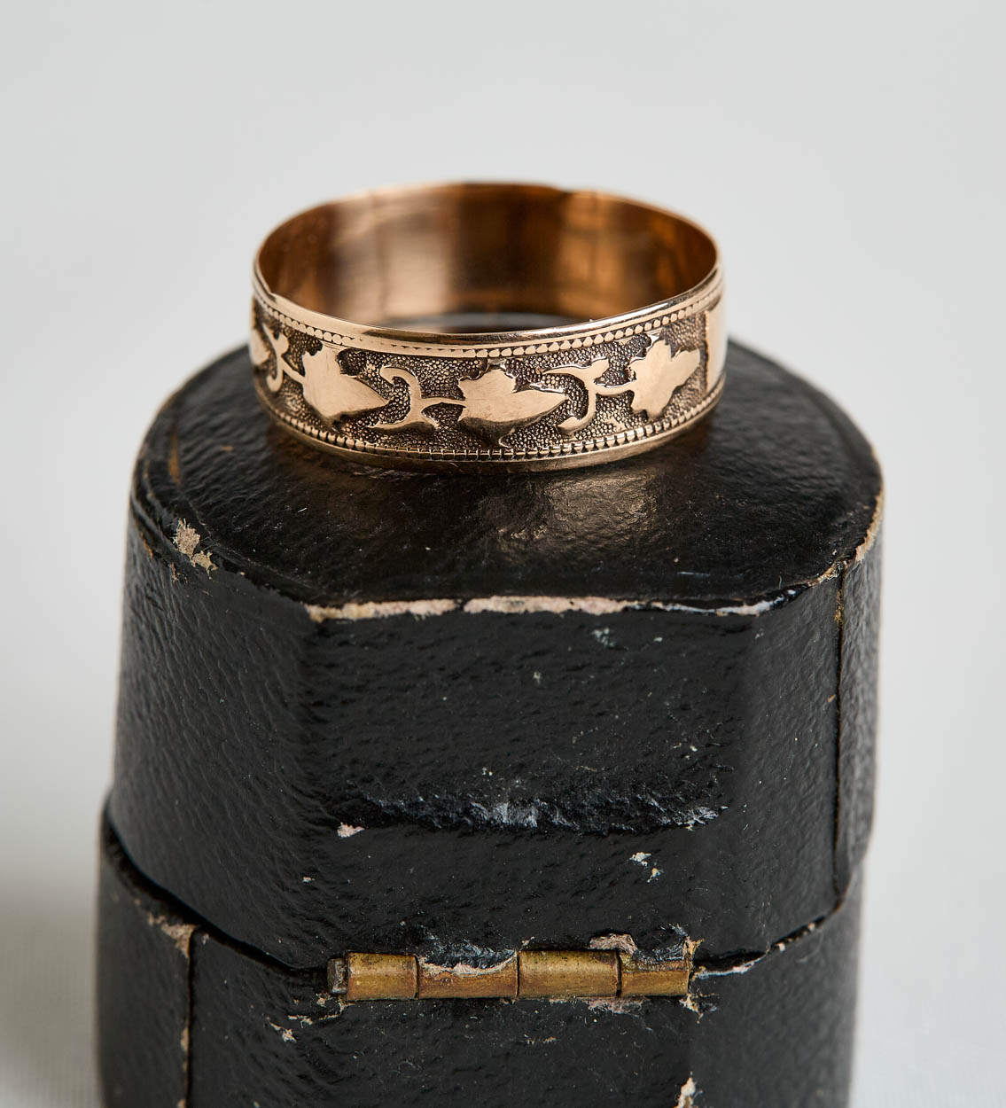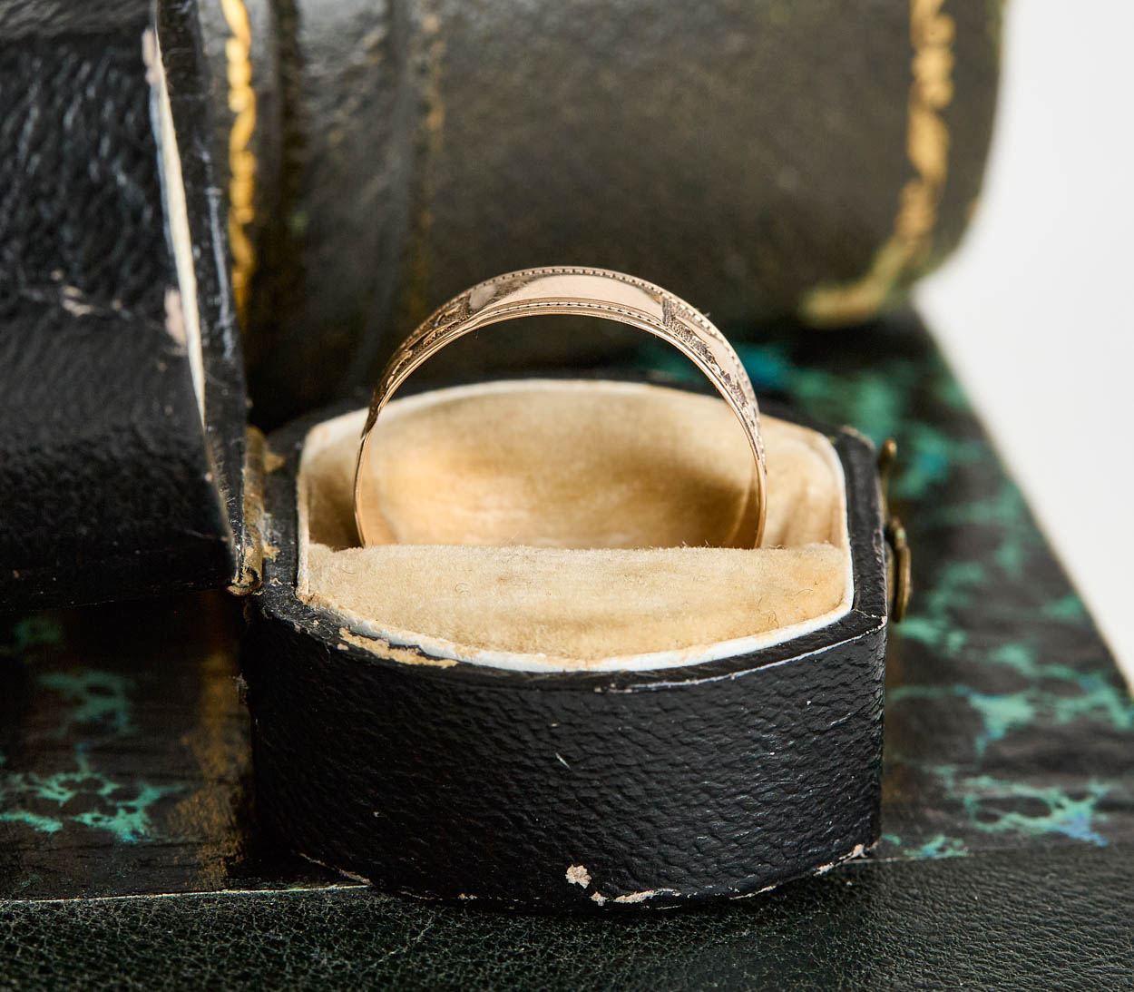 Beautiful c. 1880s 12K rose gold engraved wedding band.