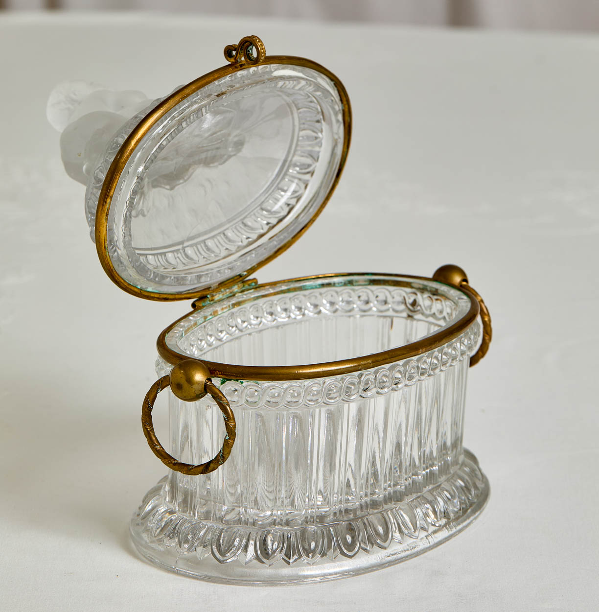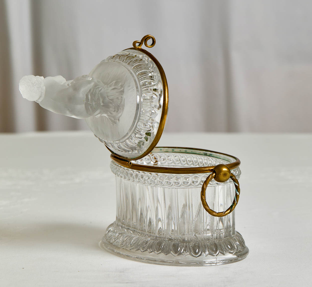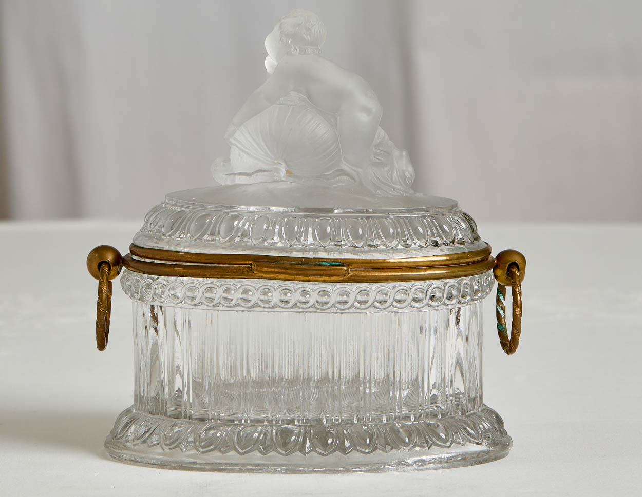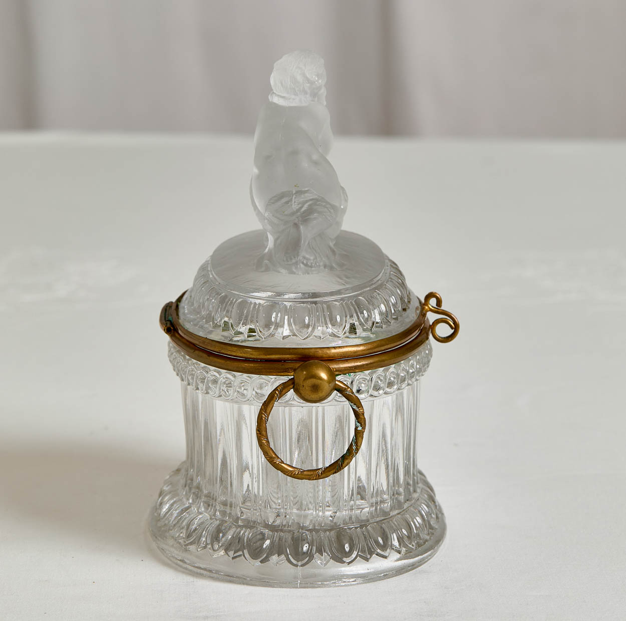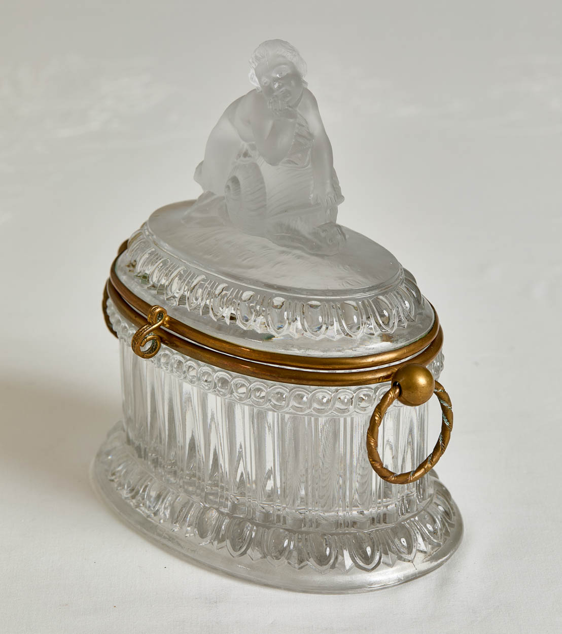 A gorgeous 19th century Baccarat glass box with a frosted glass cherub on the top.