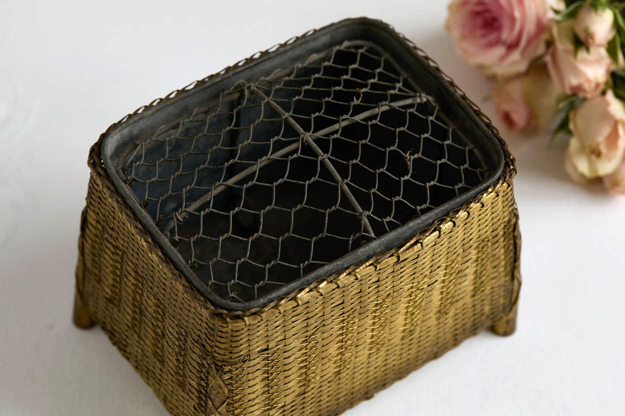 A beautiful 19th century French gilt basketweave flower frog. So unique!