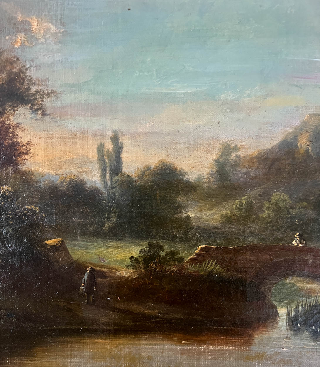 Acquired in France, a stunning 19th century landscape oil on wood in an amazing gesso frame.
