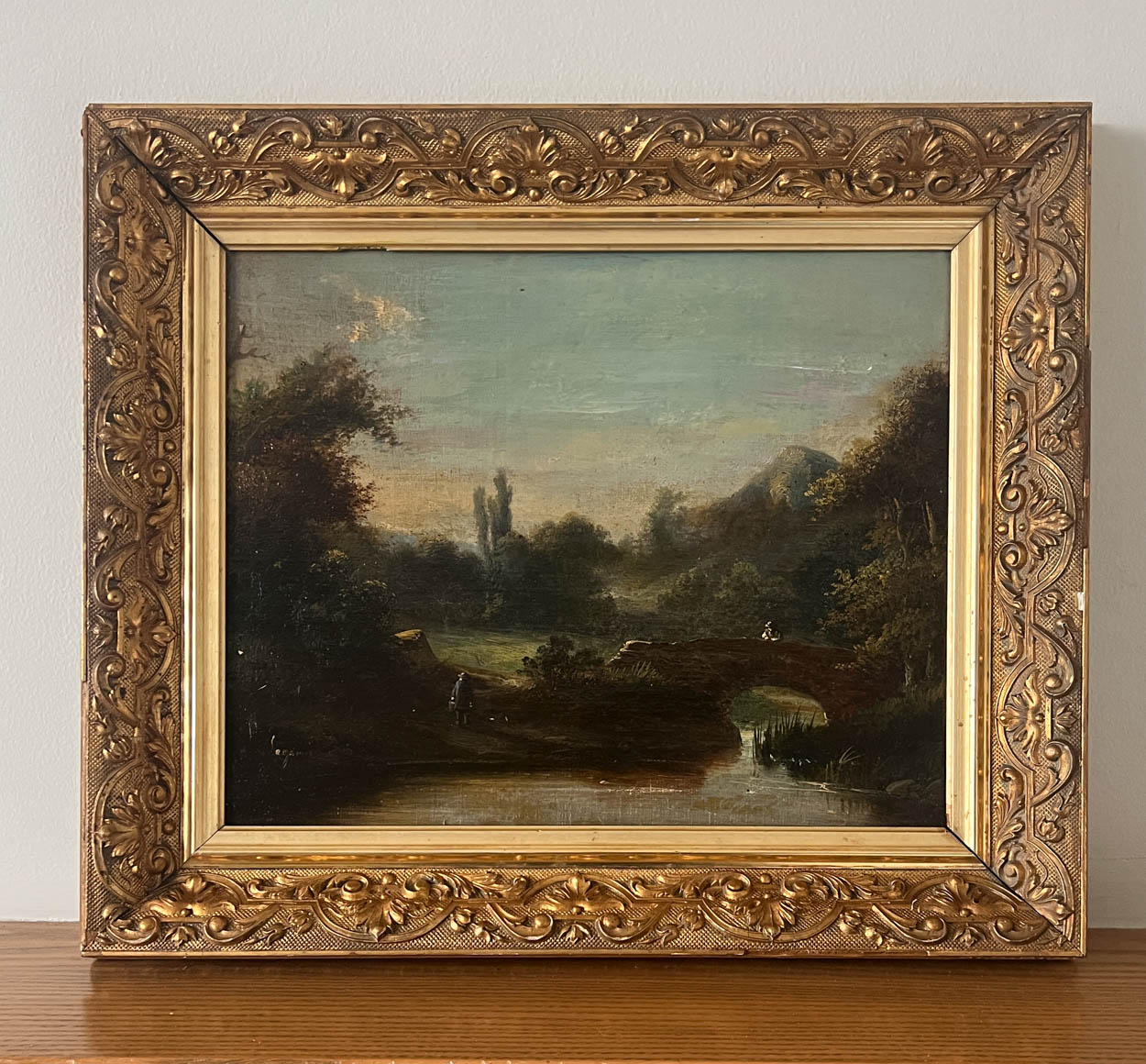 19th C. Parisian Landscape Oil Painting, Gesso Frame