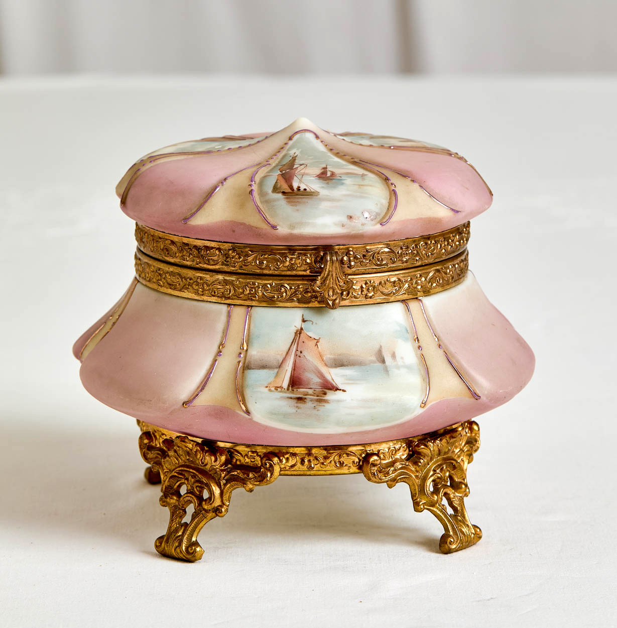 Large 1890s Nakara Nautical Themed Glass Footed Box