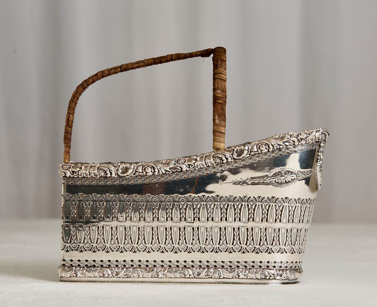 Antique English Silver Plate Repousse Wine Caddy