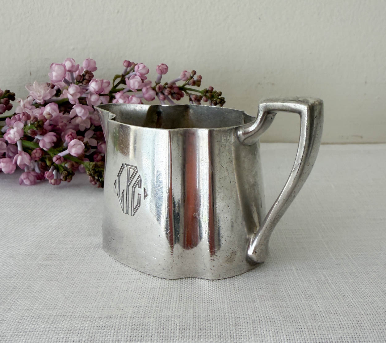Acquired from a collector's lavish estate, a pretty little antique silver plated creamer from the Lake Placid Club, Colorado.
