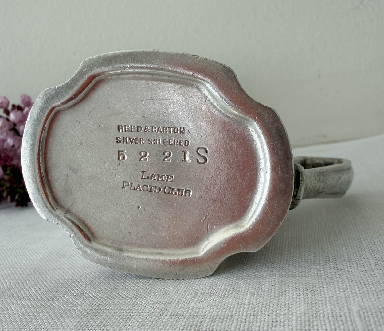 Manufactured by Reed & Barton and pre-dates 1928. Stamped, "Lake Placid Club".