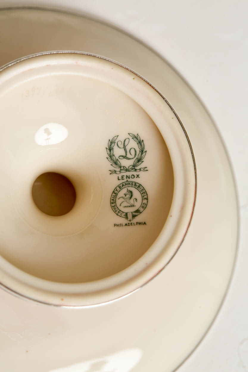 It measures 6-5/8" in diameter and stands 2-3/4" tall. Superb condition with Lenox marks on the base.