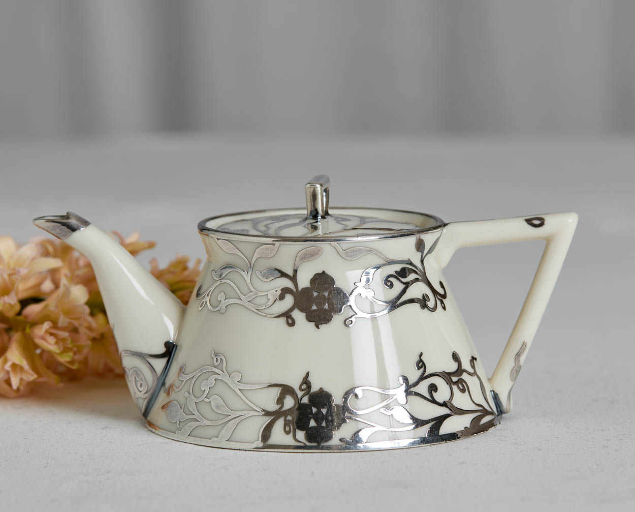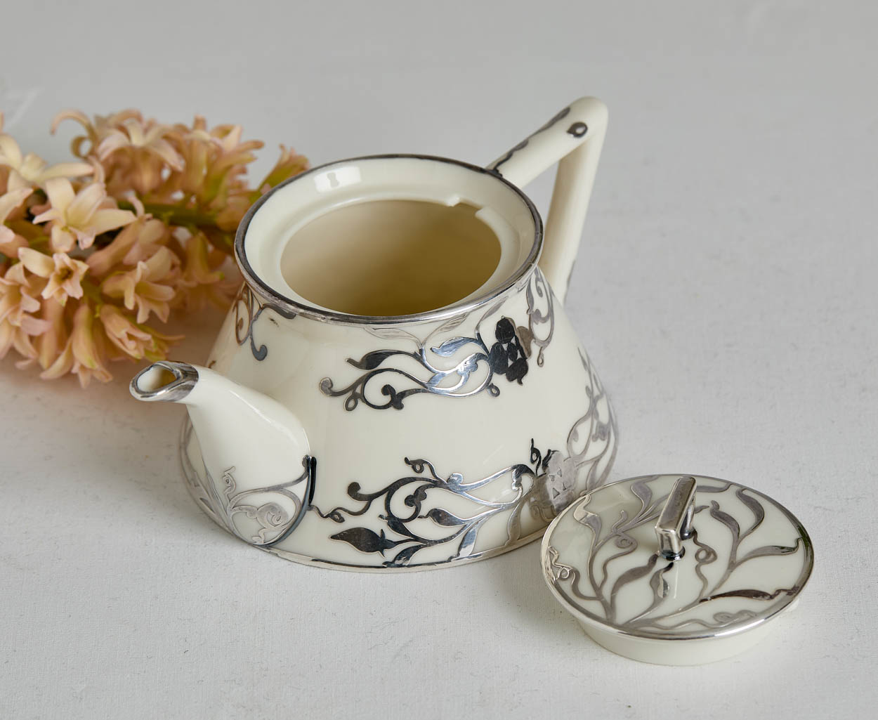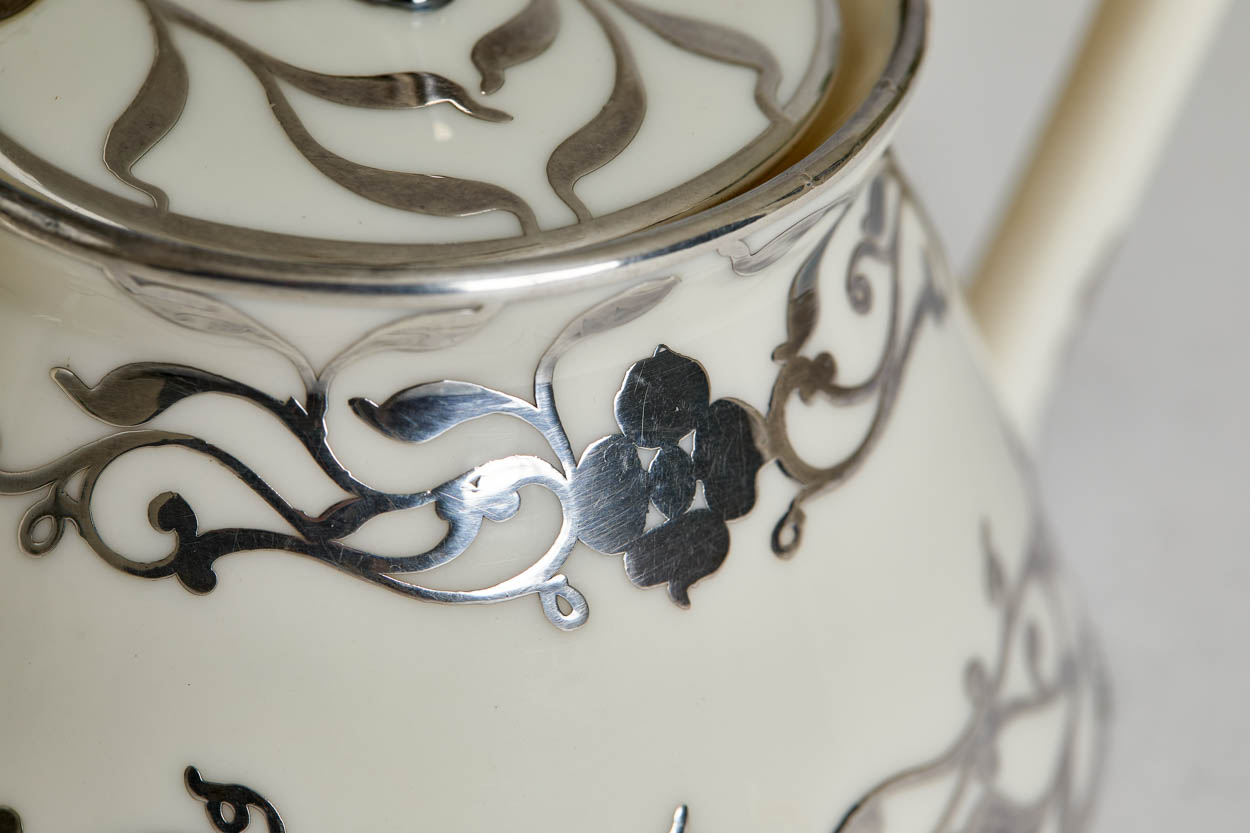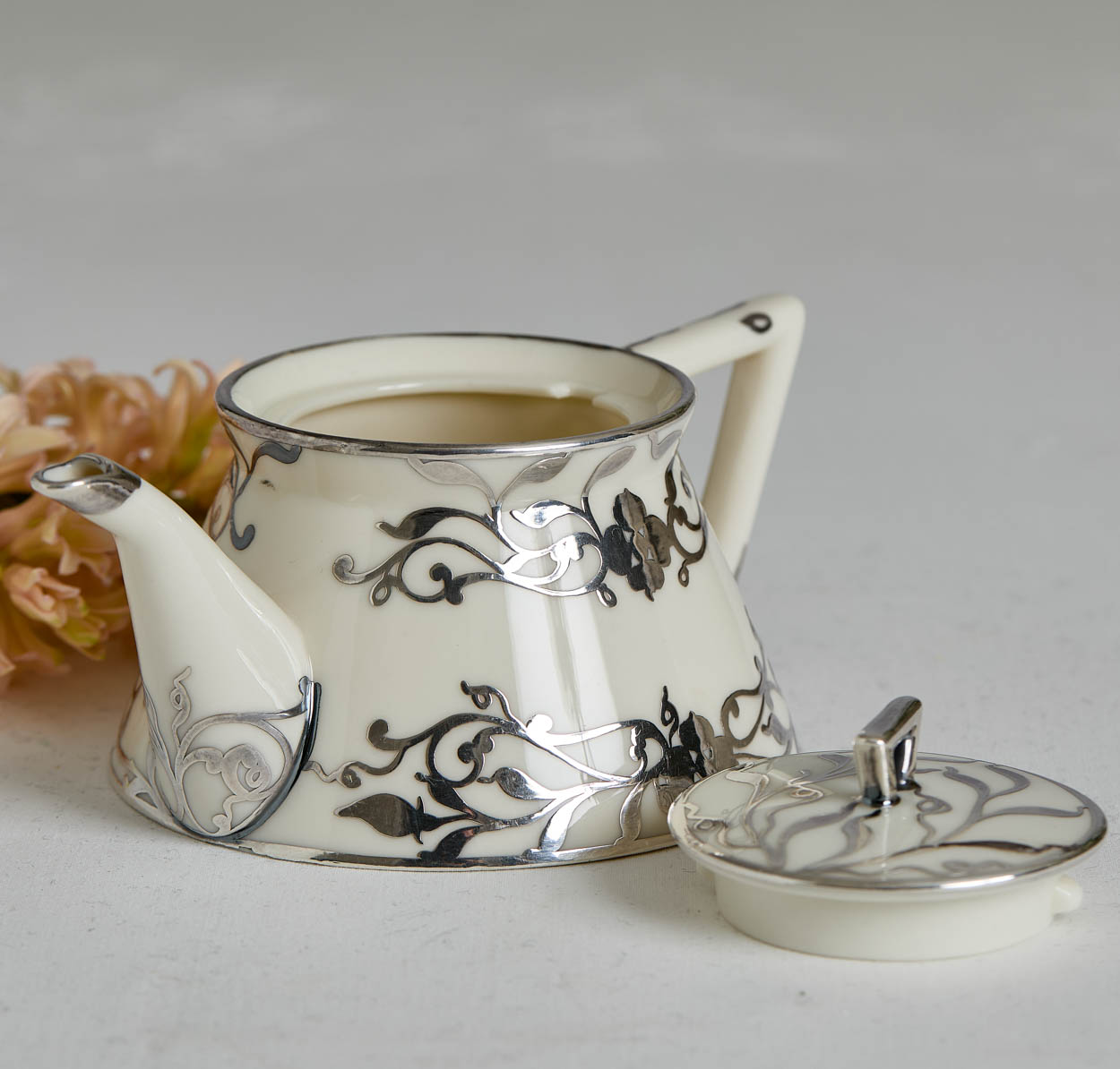 Gorgeous antique off white Lenox teapot with solid silver overlay.