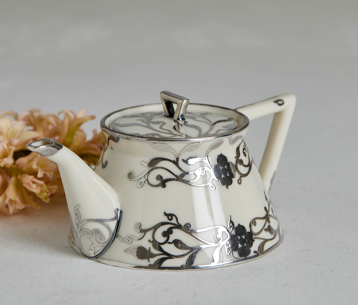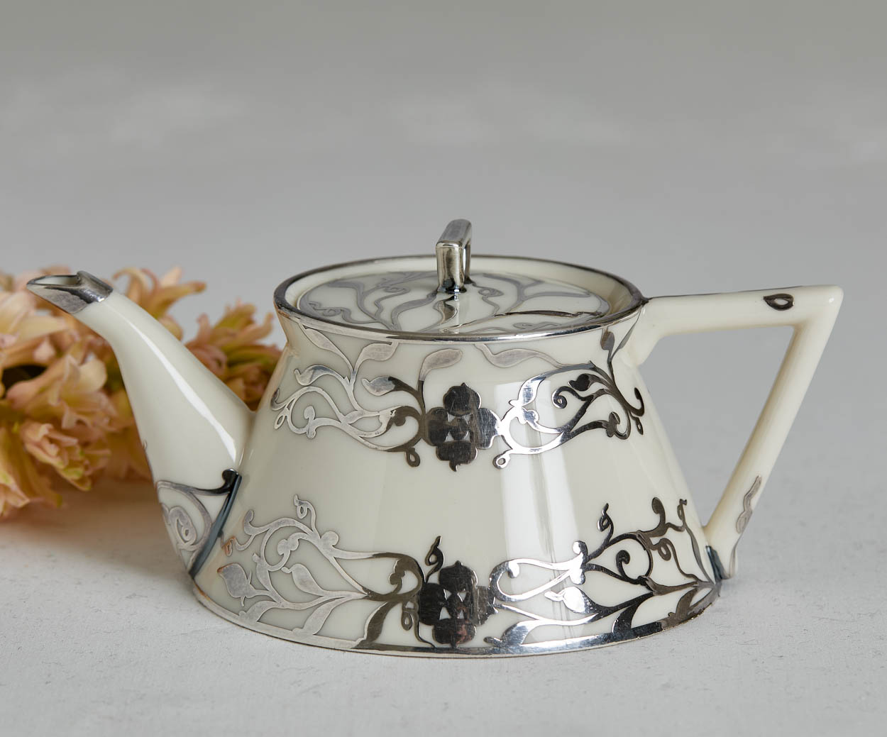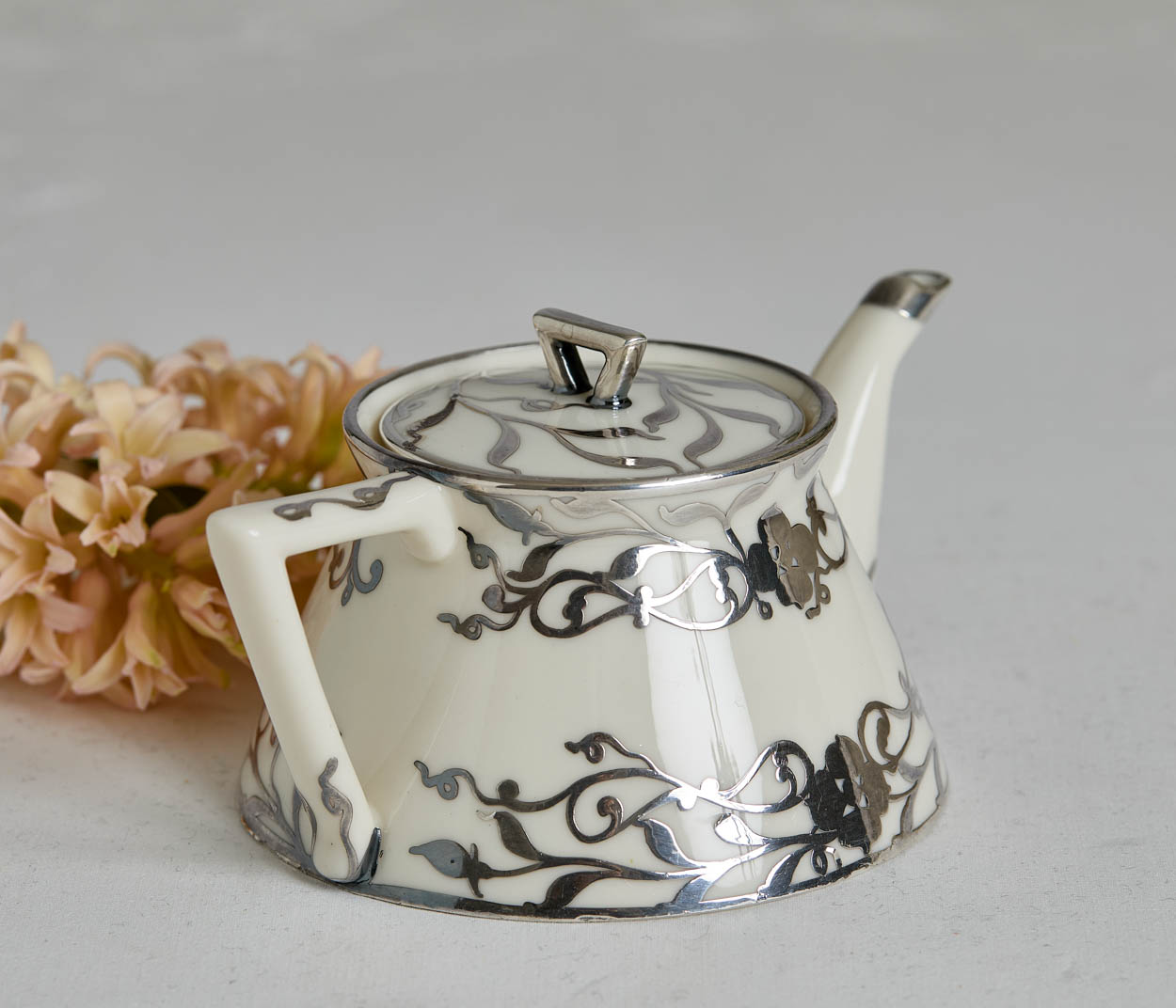 Gorgeous antique off white Lenox teapot with solid silver overlay.
