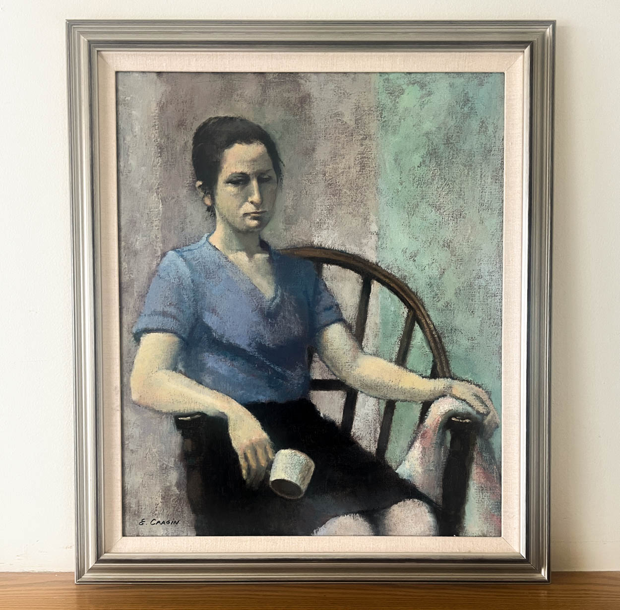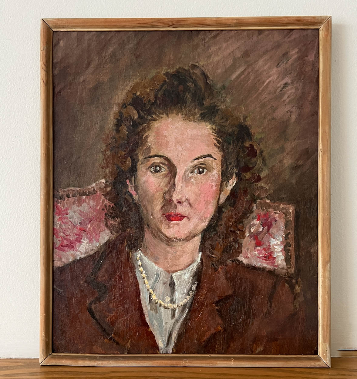 Large Vintage Impressionist Woman Portrait Oil Painting