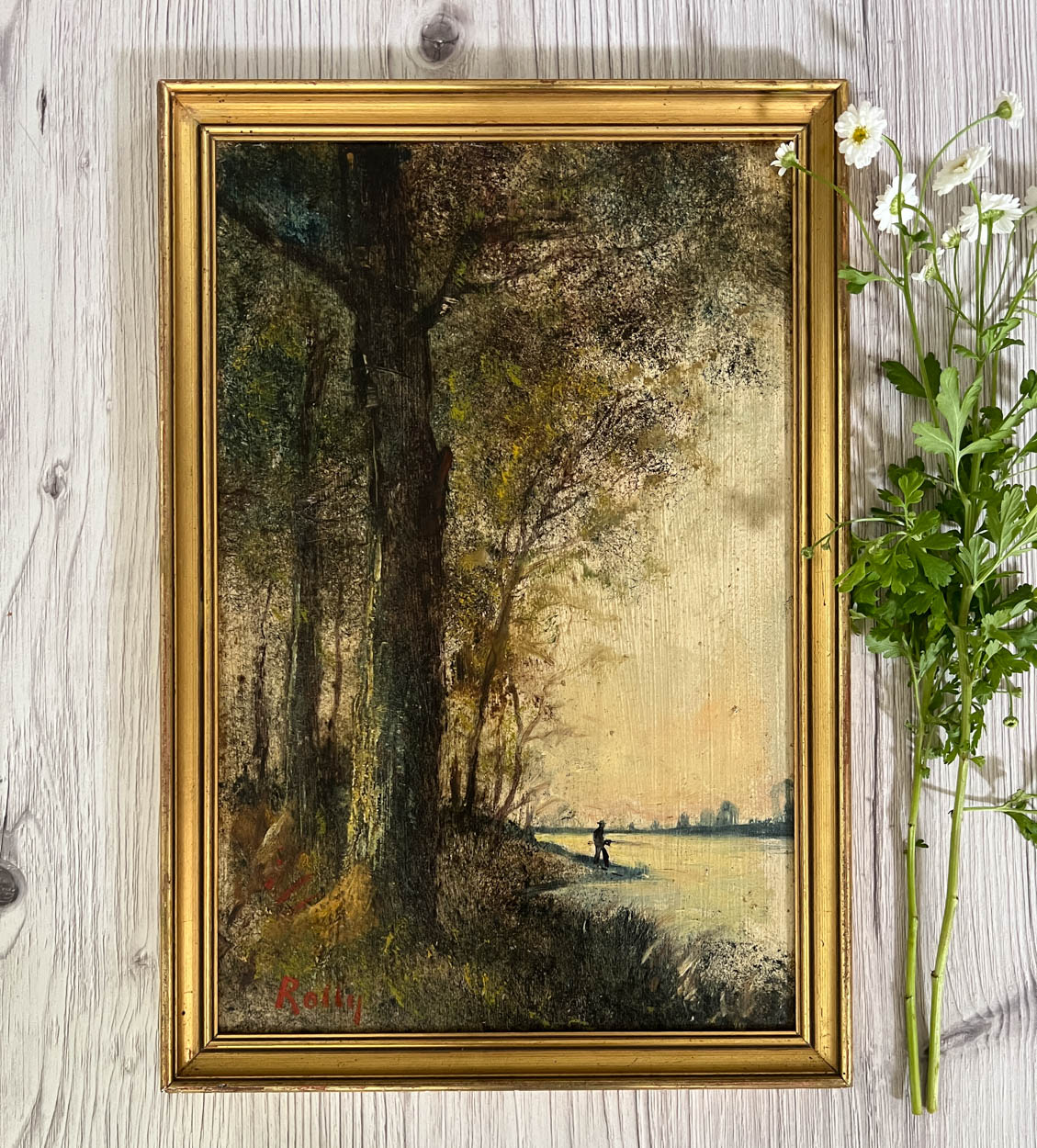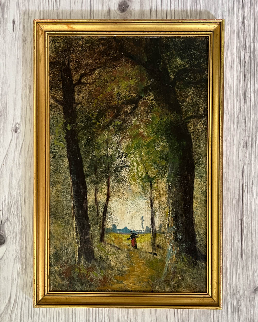19th C. Parisian Landscape Oil Painting, Gesso Frame
