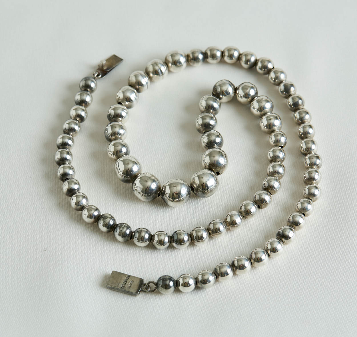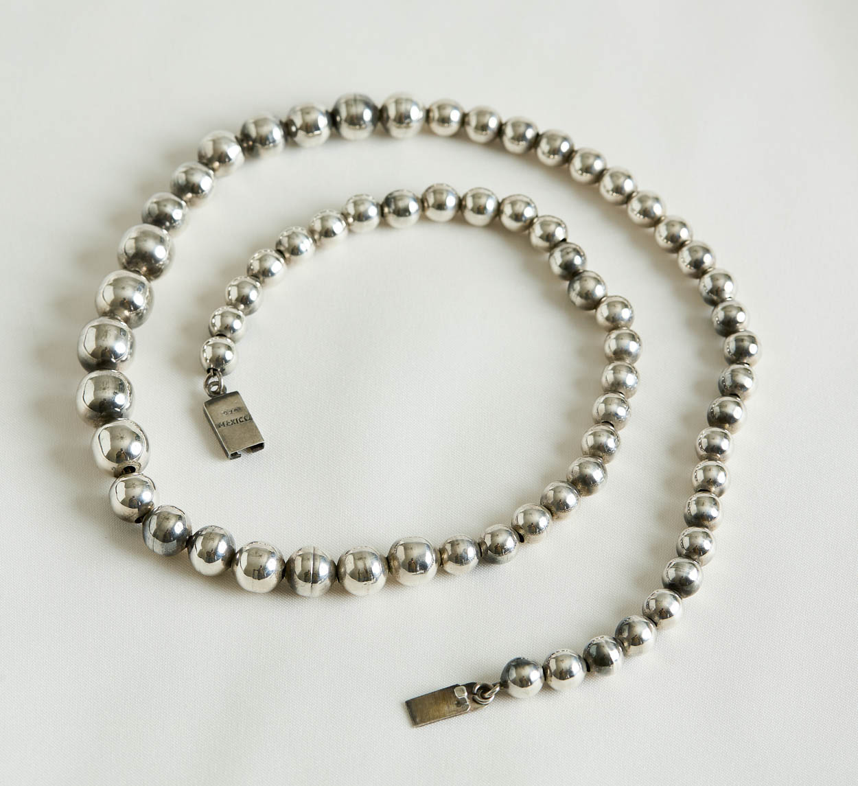 Chunky Vintage Mexican Sterling Silver Graduated Ball Necklace