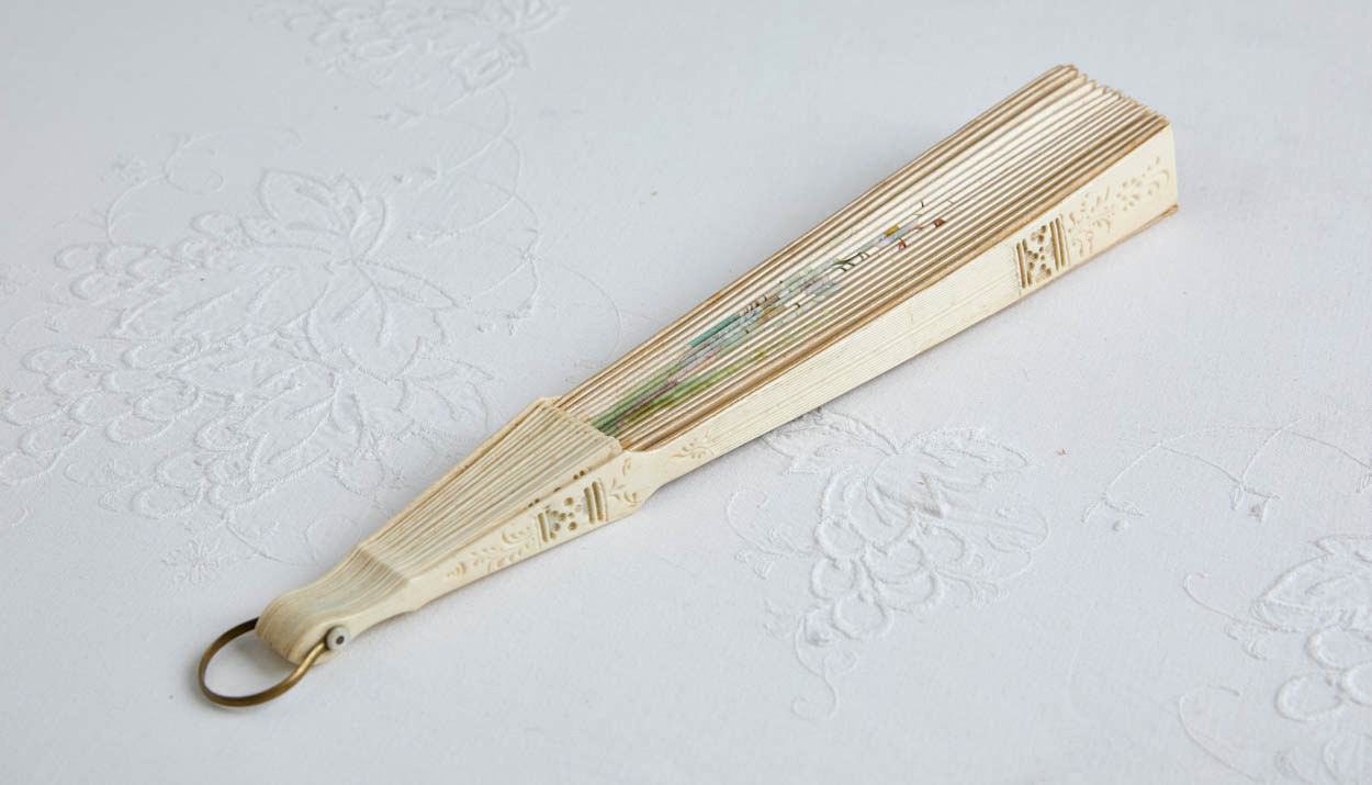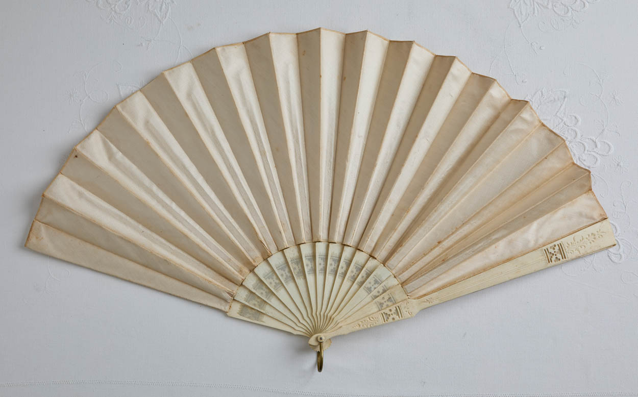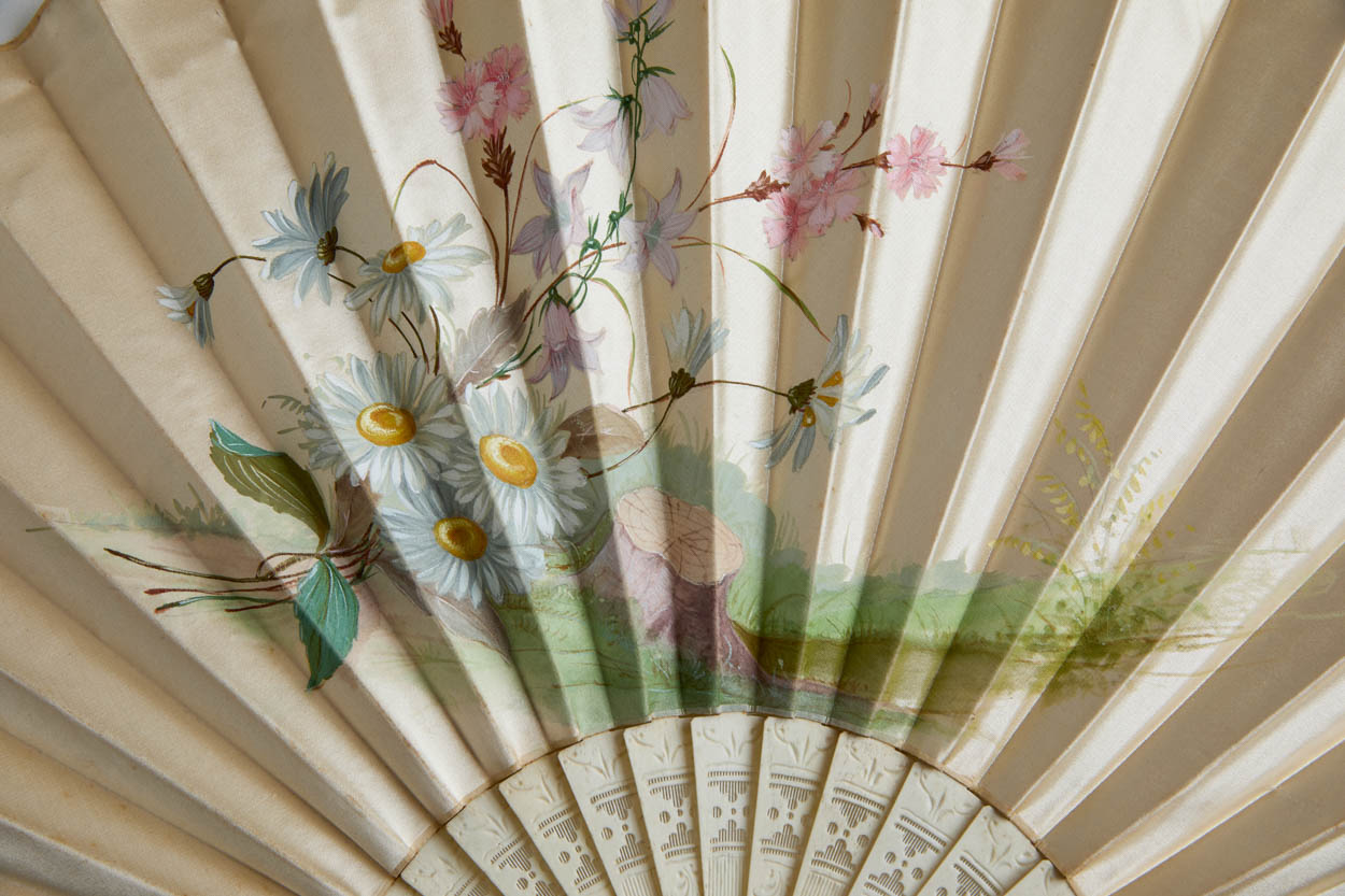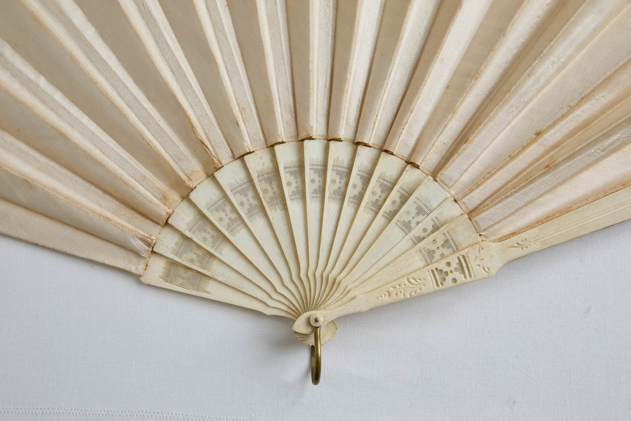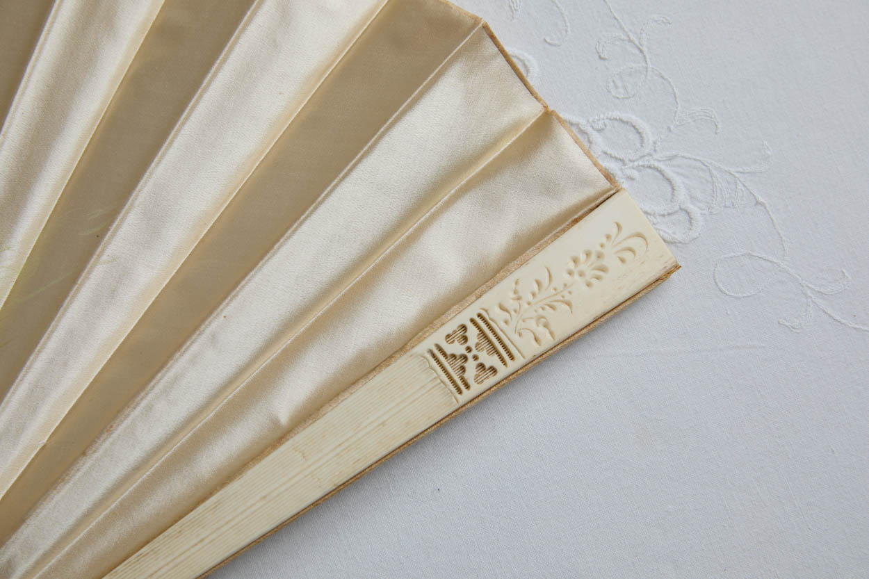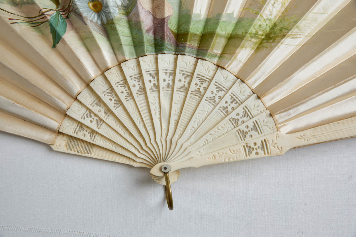 Extra Large Victorian Hand Painted French Silk and Ivory Hand Fan