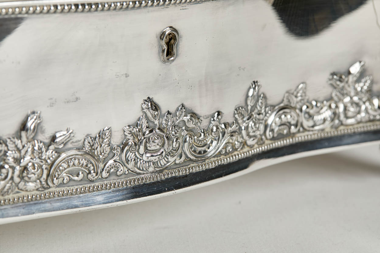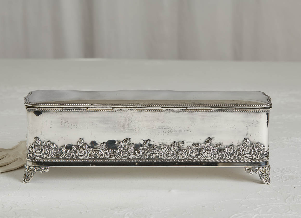 Large Victorian Silver Plate Silk-Lined Repousse Jewelry Box