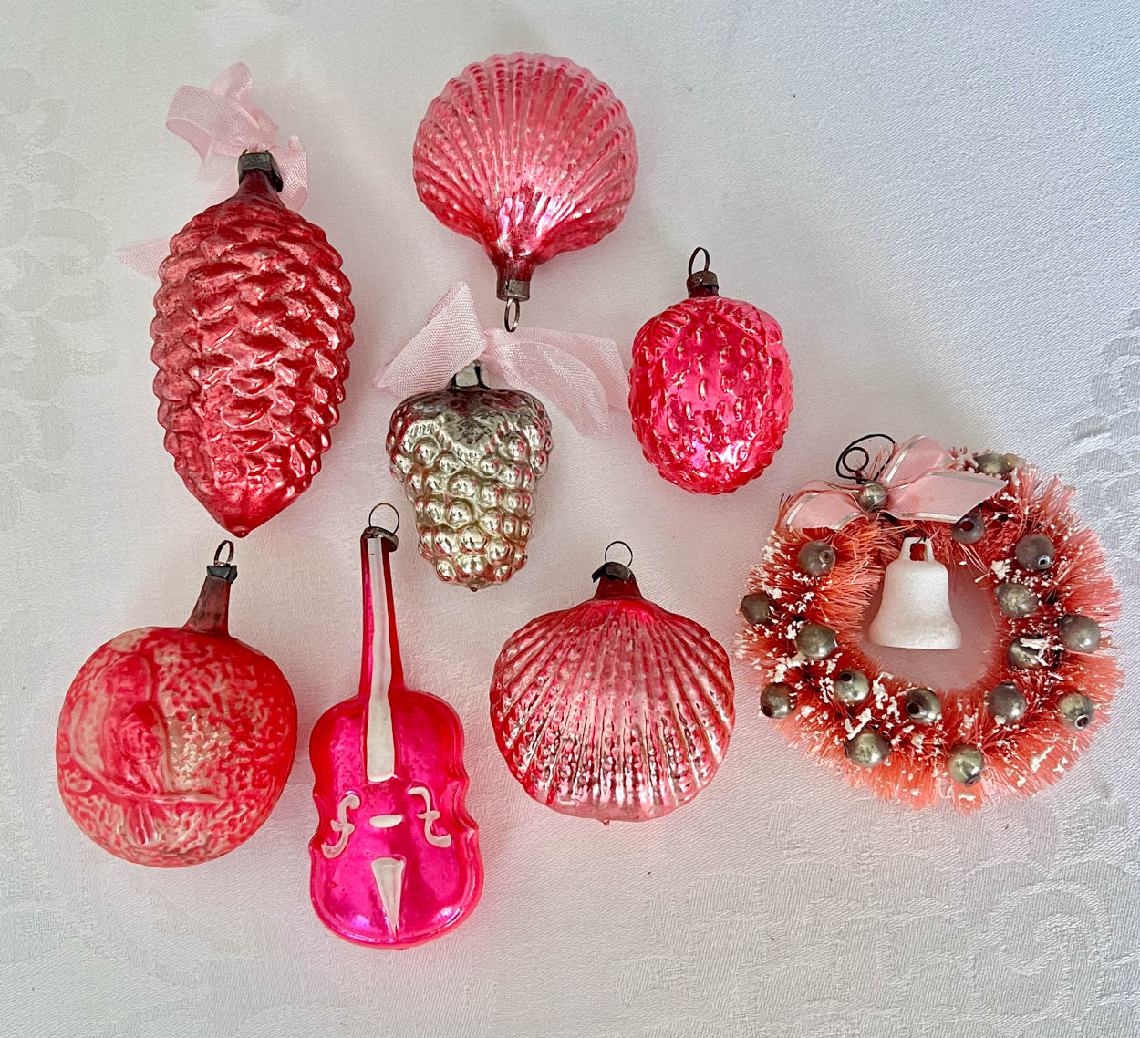 Lot of Vintage Pink Mercury Glass Ornaments