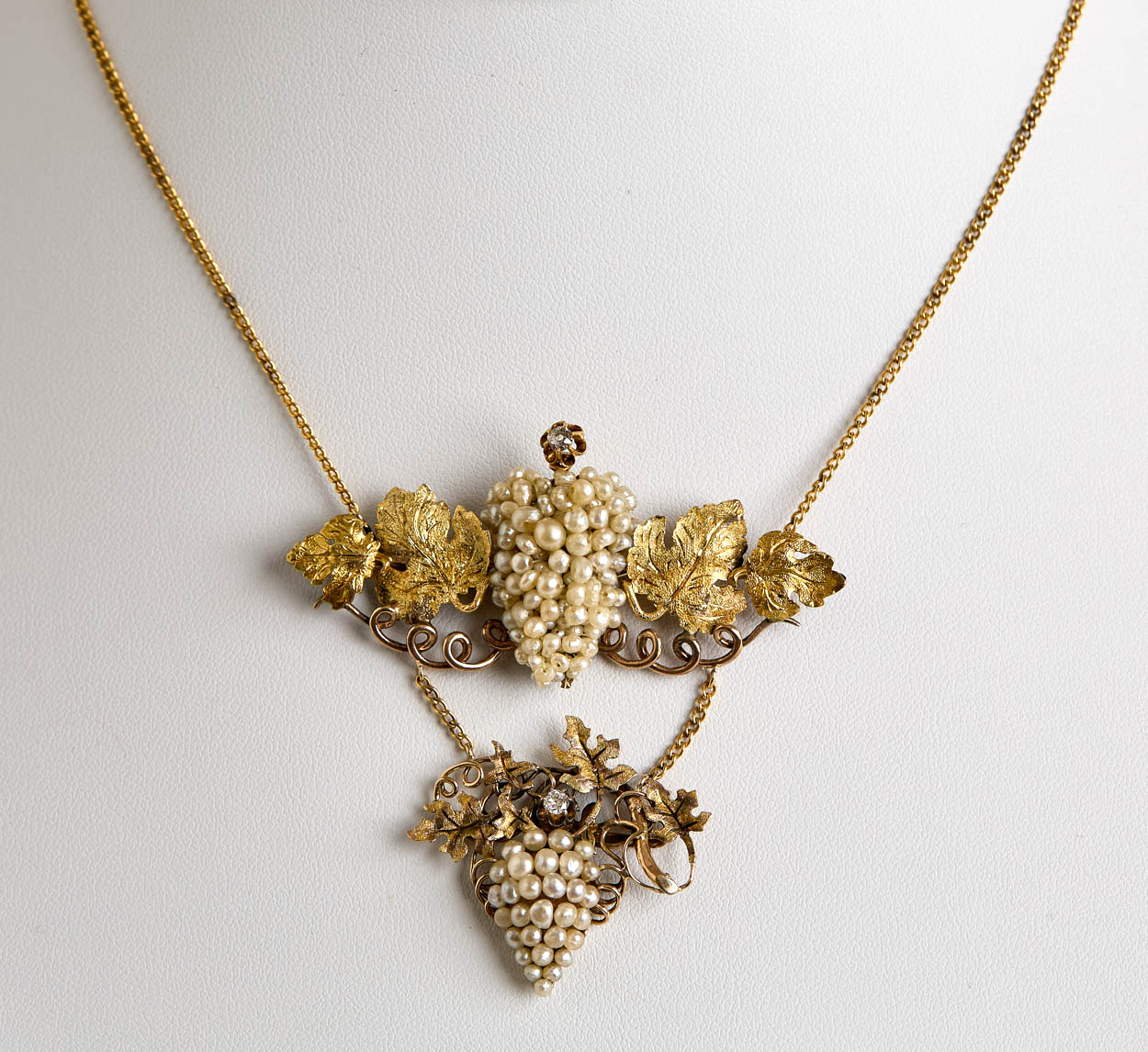Victorian 14K & 10K Gold Pearl & Diamond Grape Necklace