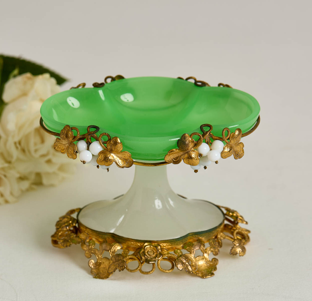19th C. Antique French Opaline Glass Ring Dish
