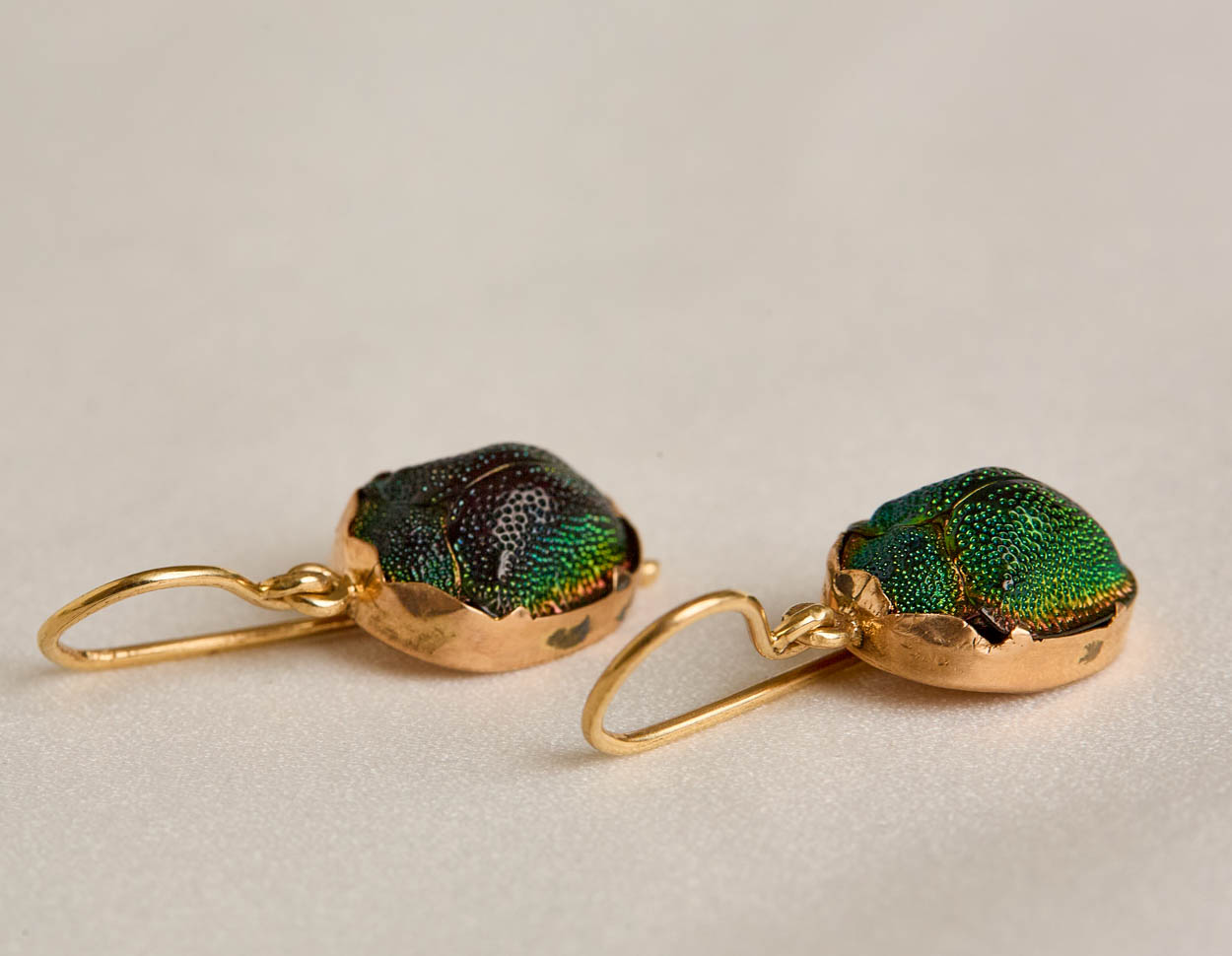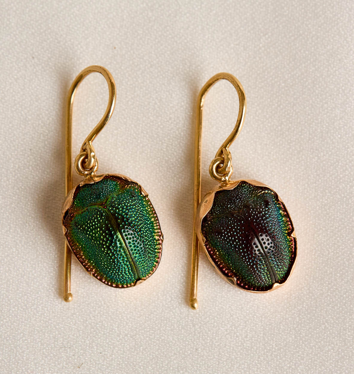Pair of Victorian 10K Gold Real Scarab Beetle Earrings, 14k Gold Wires