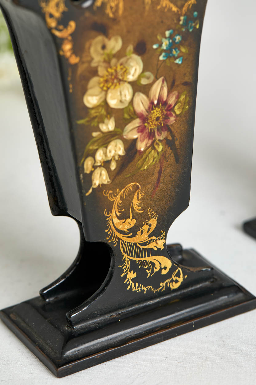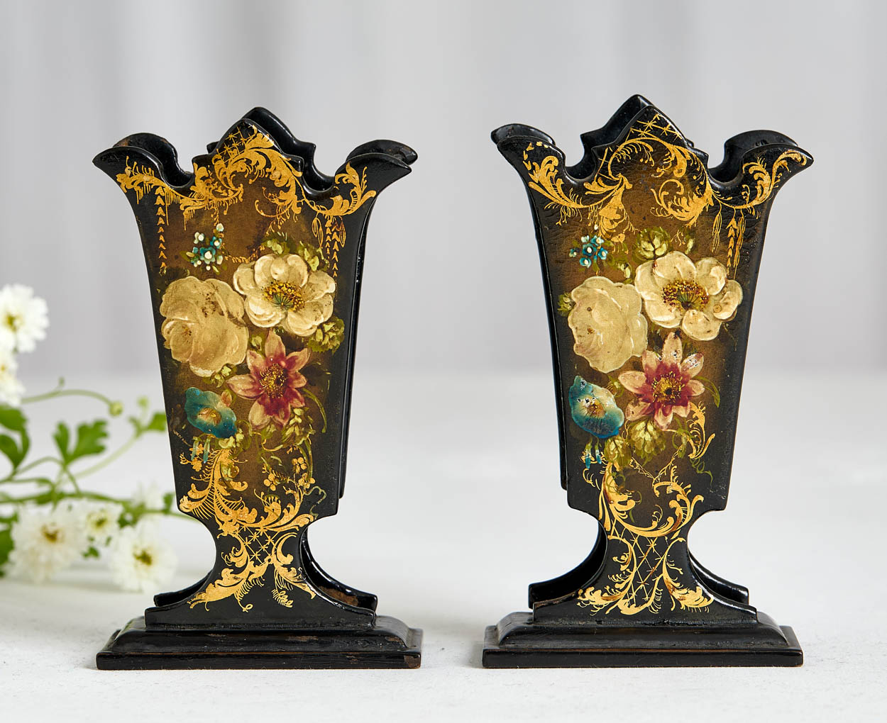 Pair of 19th C. French Hand Painted Paper Mache Spill Vases