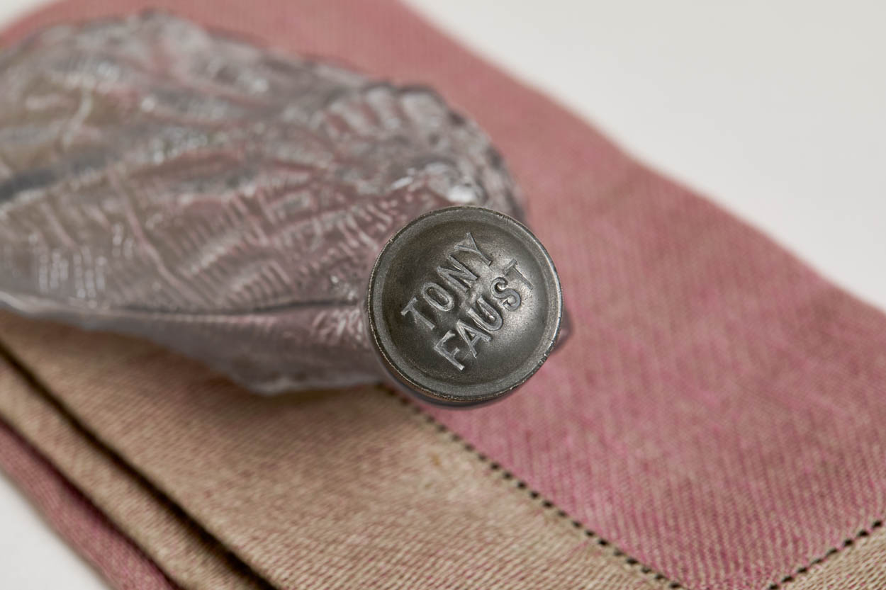Rare c. 1870s figural molded glass in the shape of an oyster from Tony Faust Oyster House.