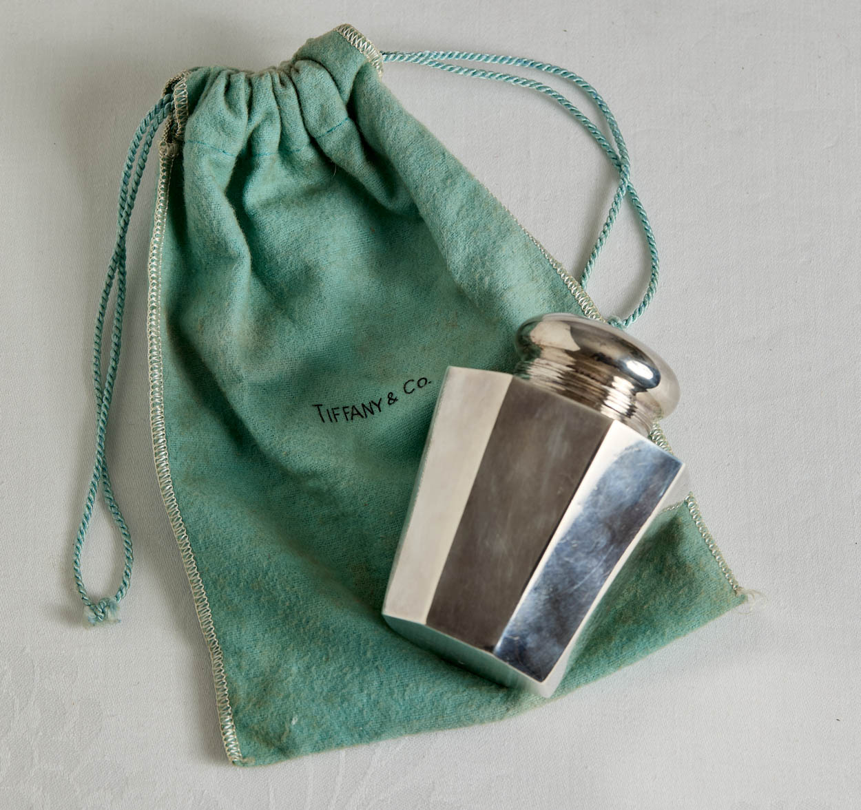 A beautiful Victorian era Tiffany & Co. sterling silver tea caddy with its carrying bag.