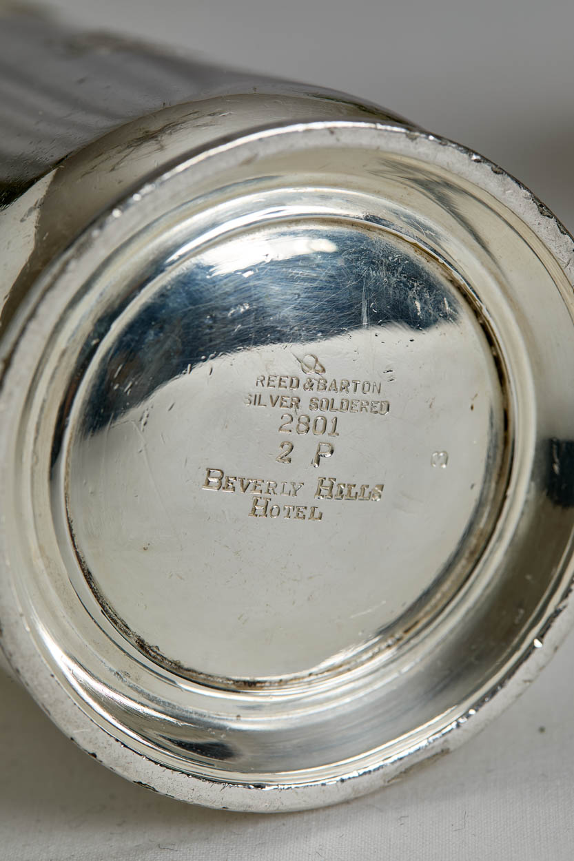 Manufactured by Reed & Barton and stamped, "Beverly Hills Hotel" Date symbol is 1949.