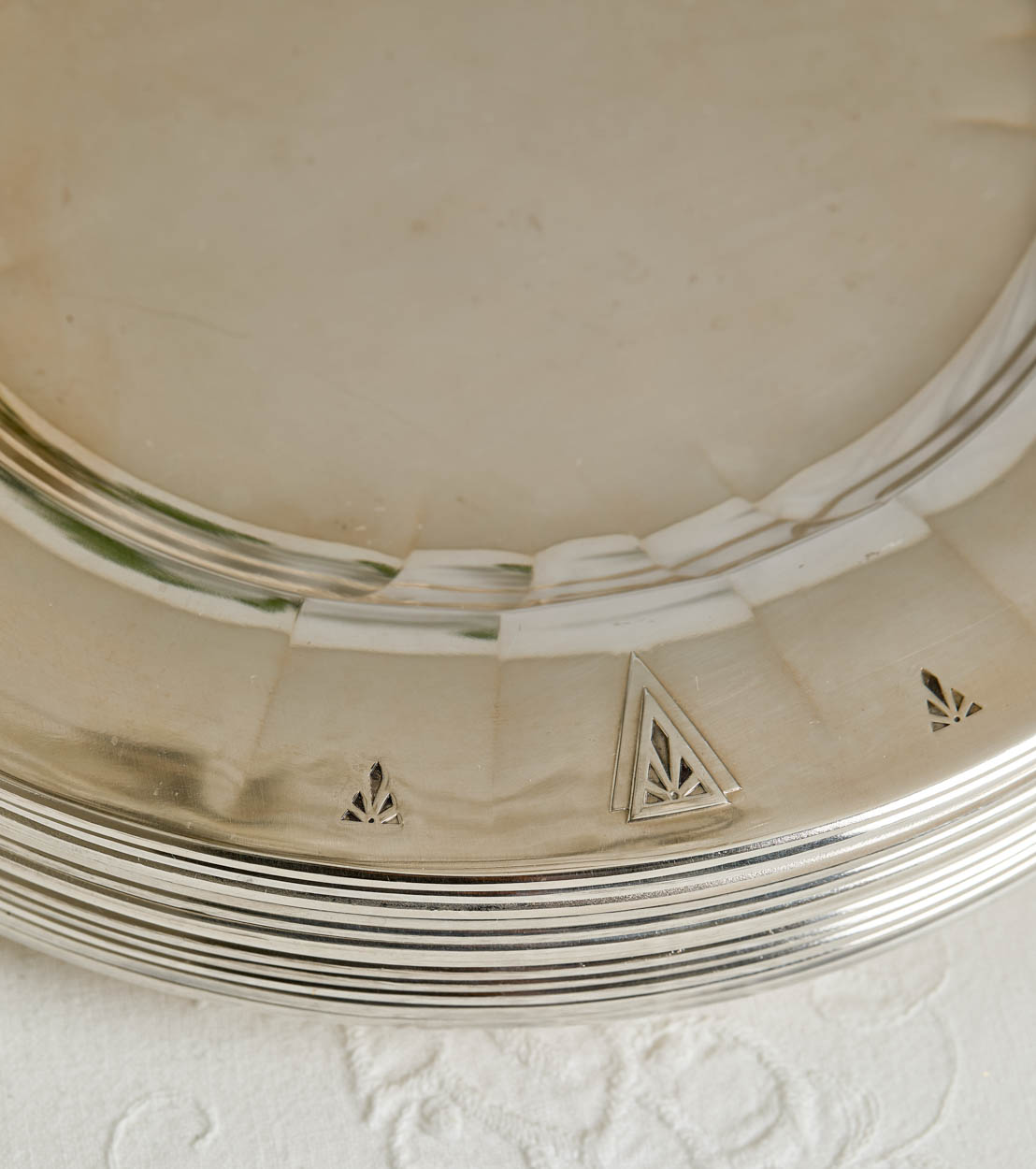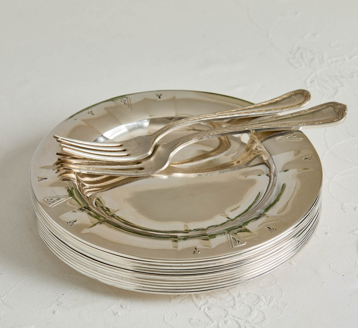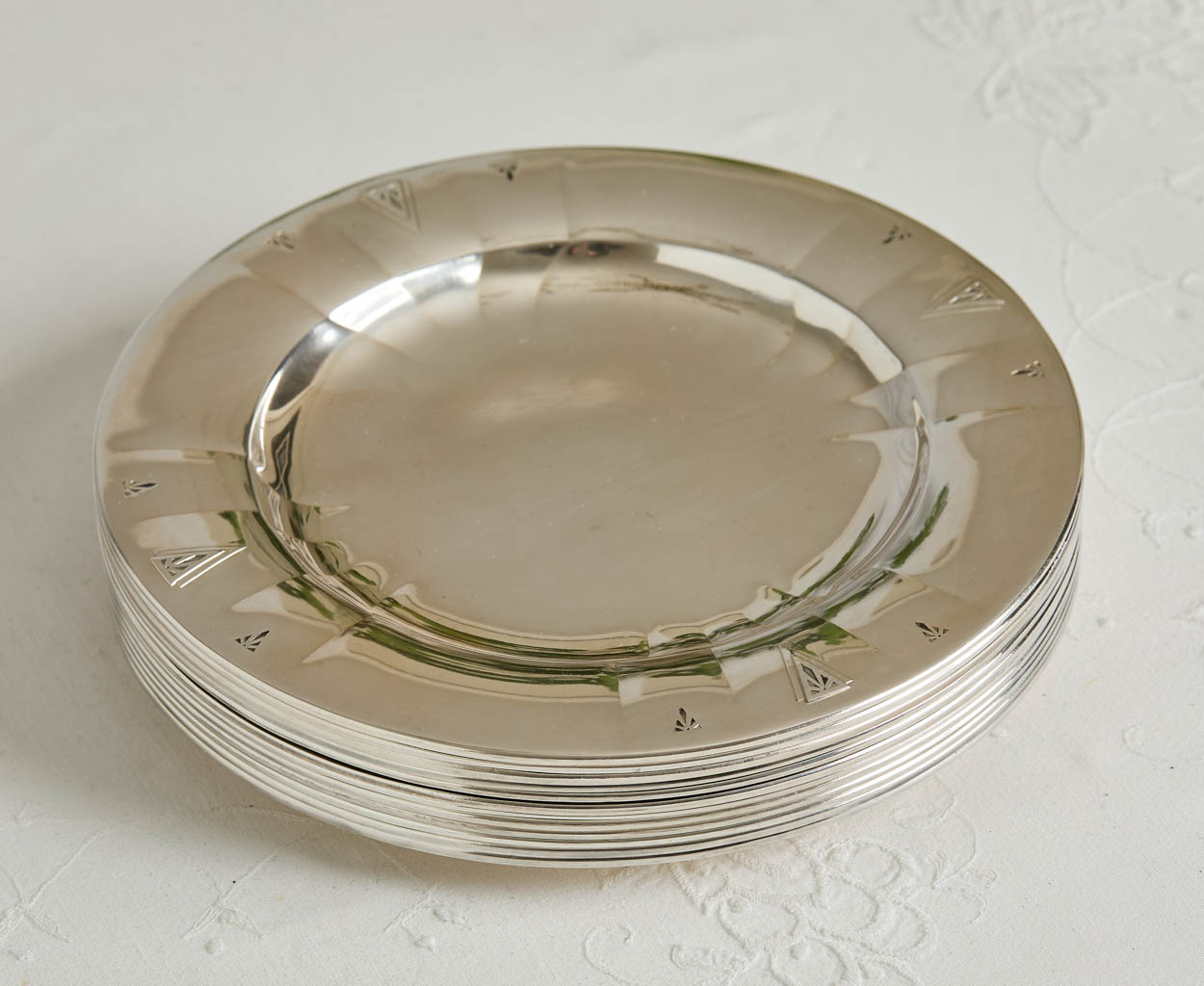 Acquired from a prominent estate, a lovely set of 12 Art Deco Deauville Oneida silver plate salad/dessert plates.