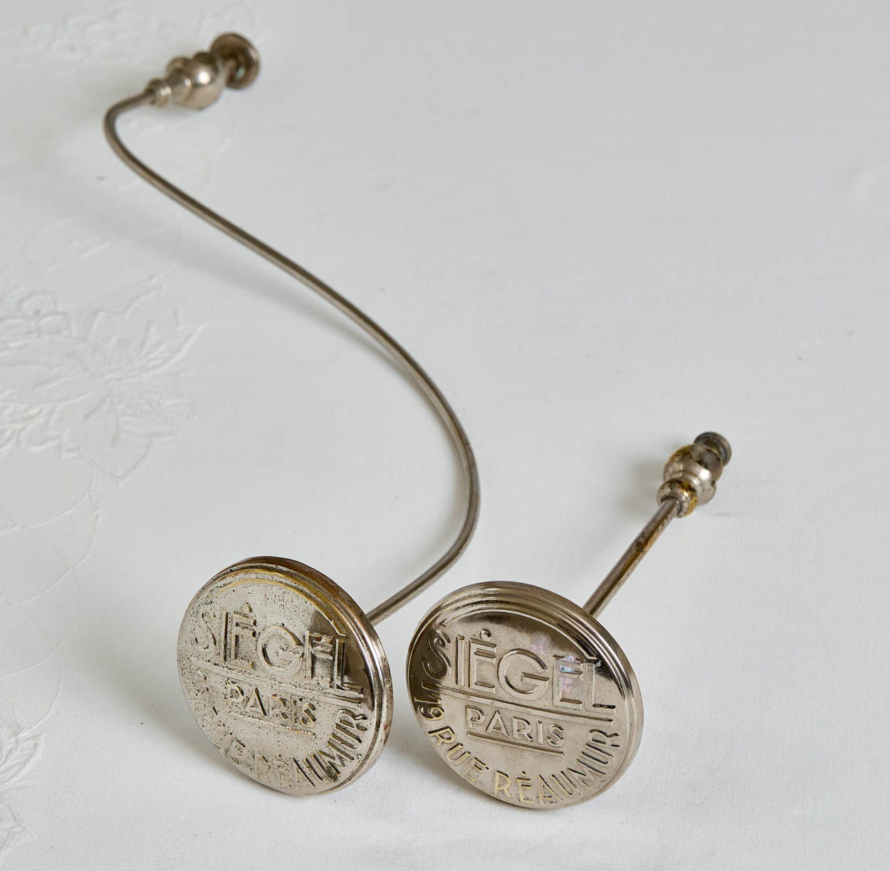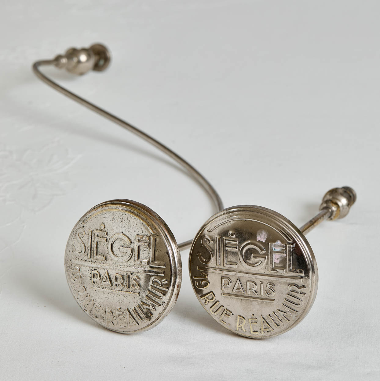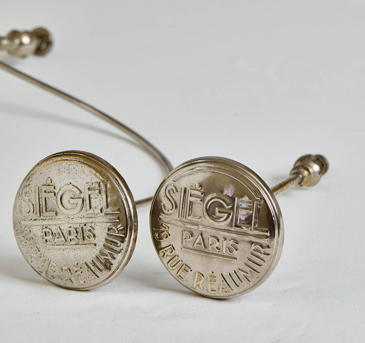 From France, a pair of vintage Siegel, Paris store display hat displays.