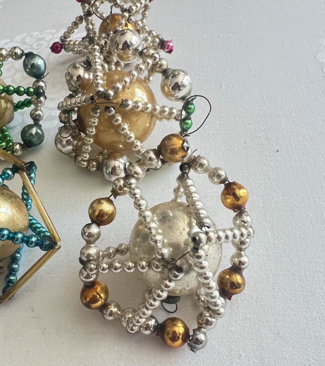 Set of 5 Vintage Mercury Glass Beaded Figural Ornaments