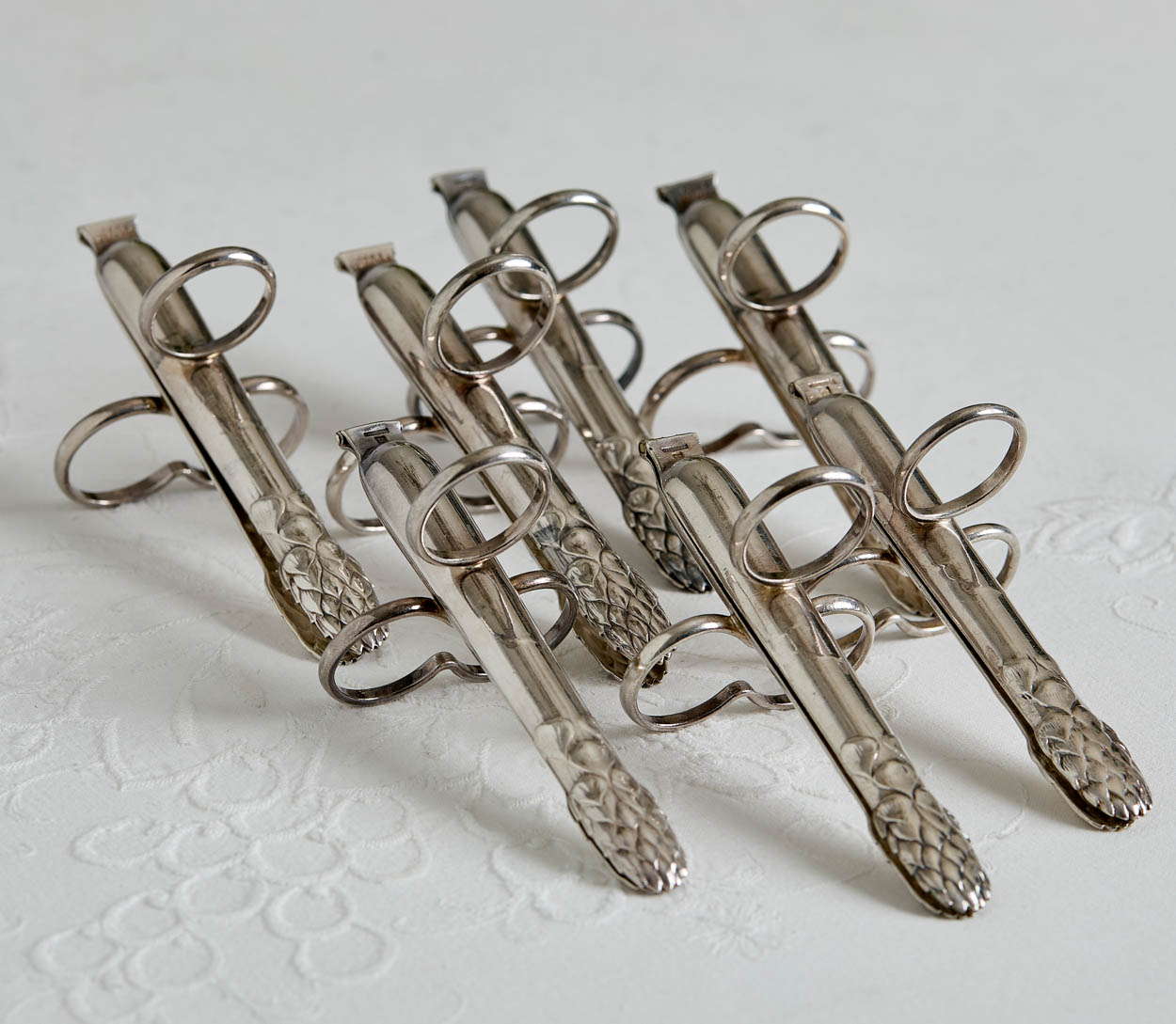 Set of 7 Antique Christofle French Silver Plate Asparagus Tongs