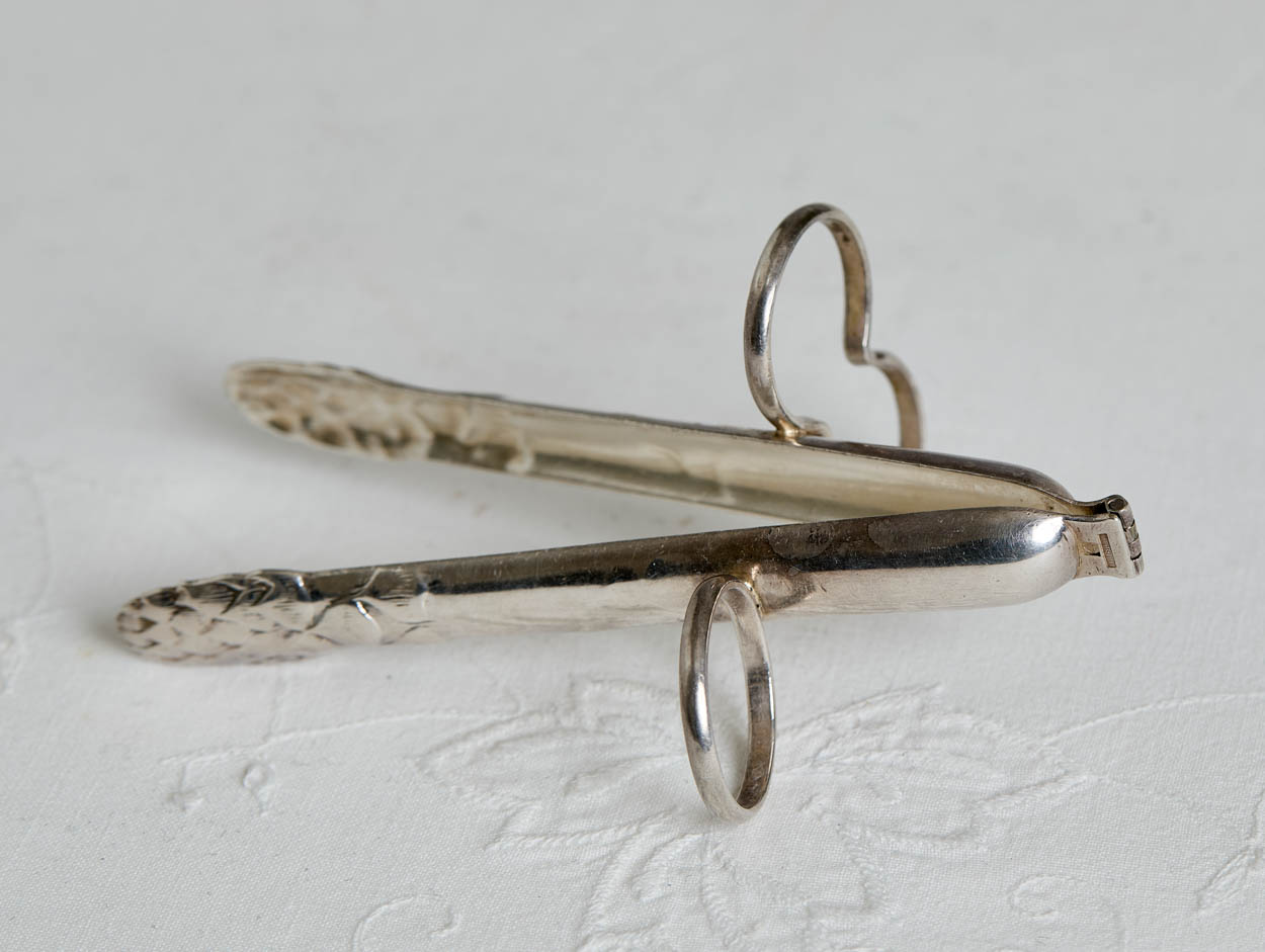 Acquired from a fabulous estate, a set of antique French Christofle silver plated asparagus tongs. These are delightful for serving.