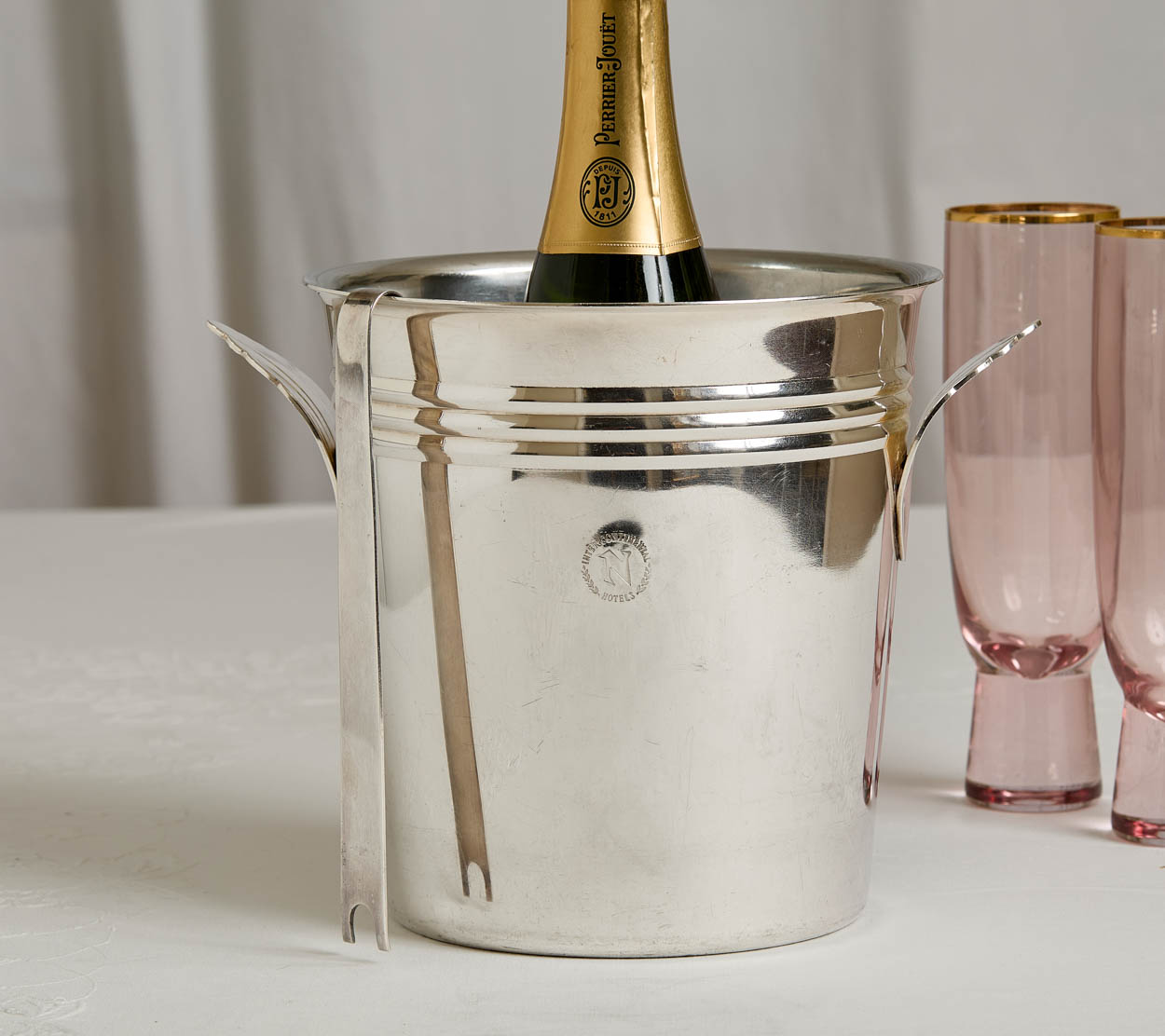 Vintage Intercontinental Hotels Champagne Bucket and Christofle Tongs