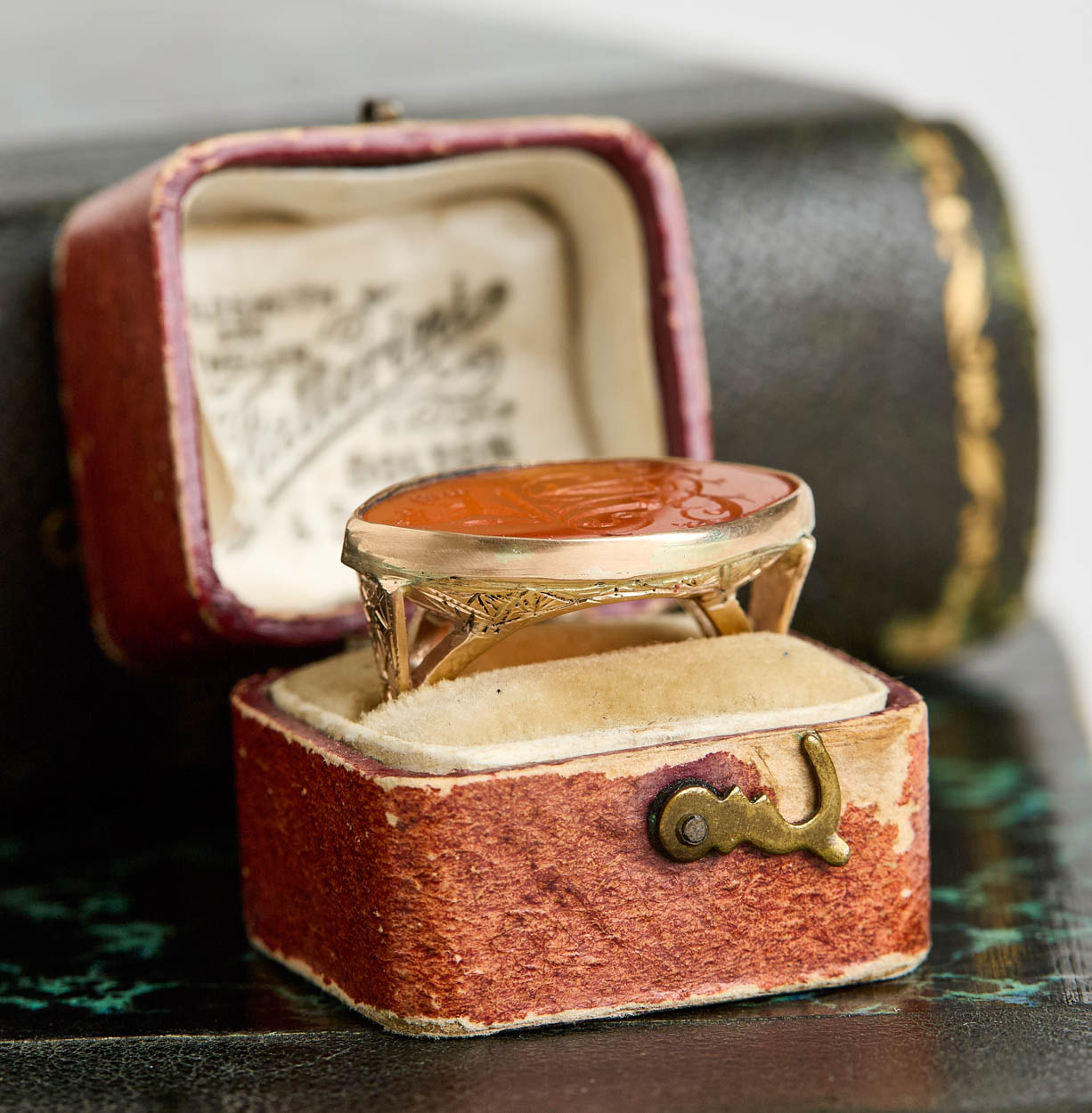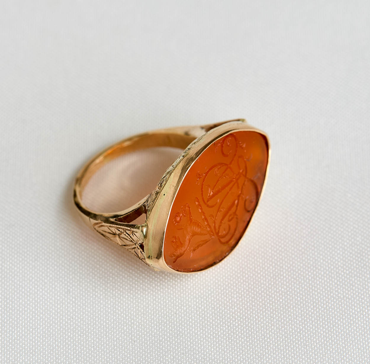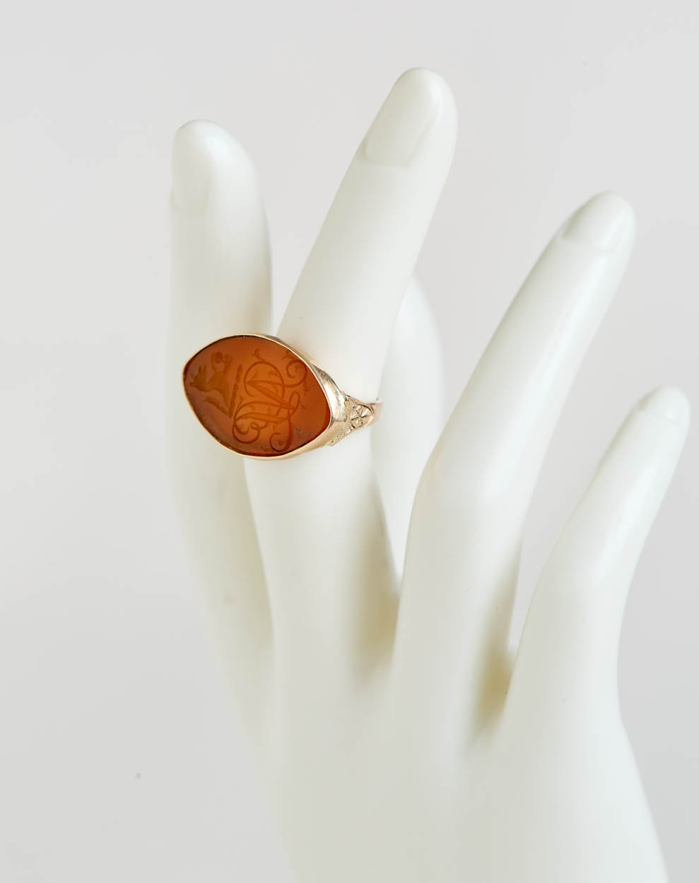 Beautiful Victorian 14K gold carnelian intaglio ring.