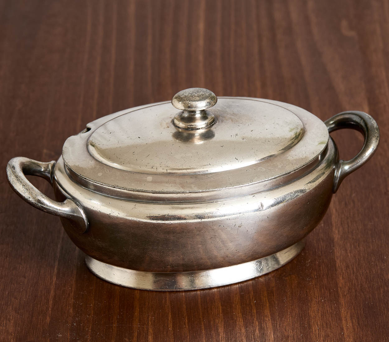 The tureen bears the hotel's name in script. It measures 8" long from handle to handle, 4-3/4" wide and stands approx. 4" tall.