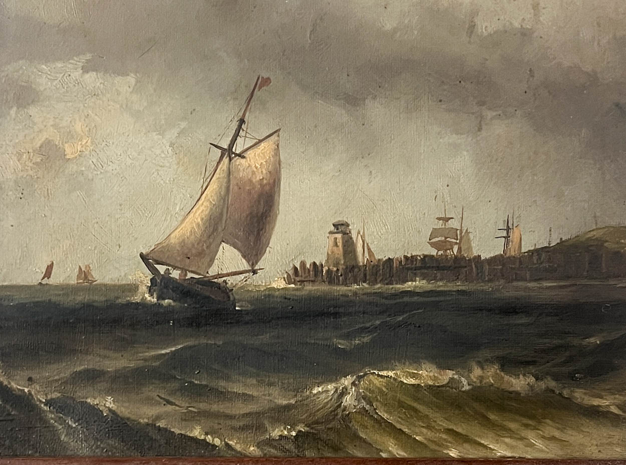 Acquired in France, a small Victorian oil painting of a ship at sea.