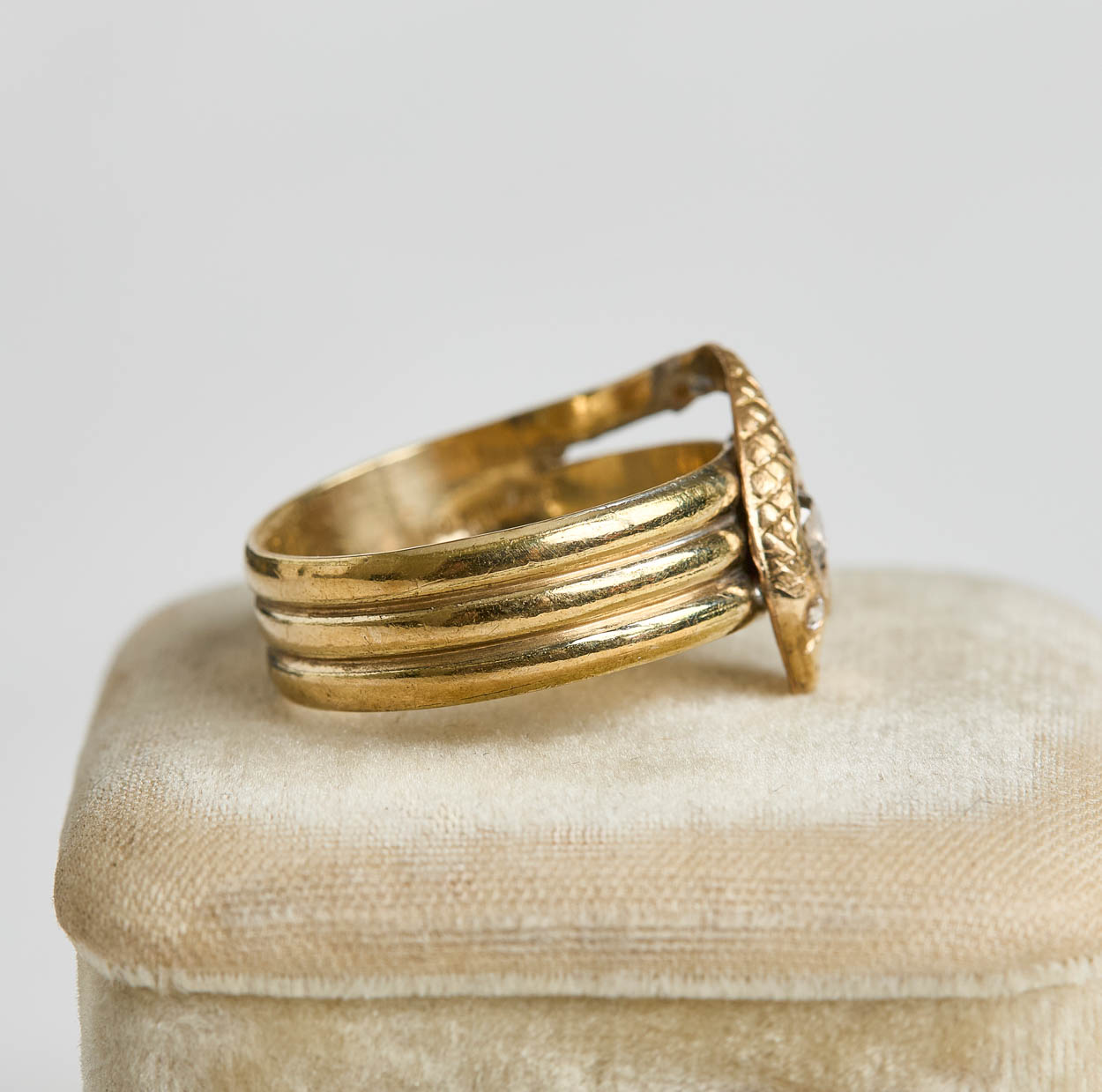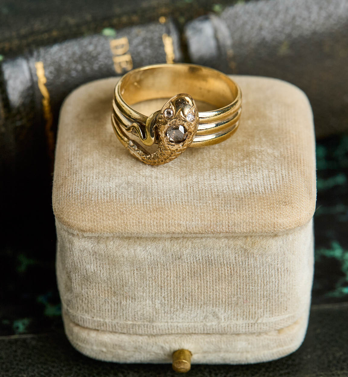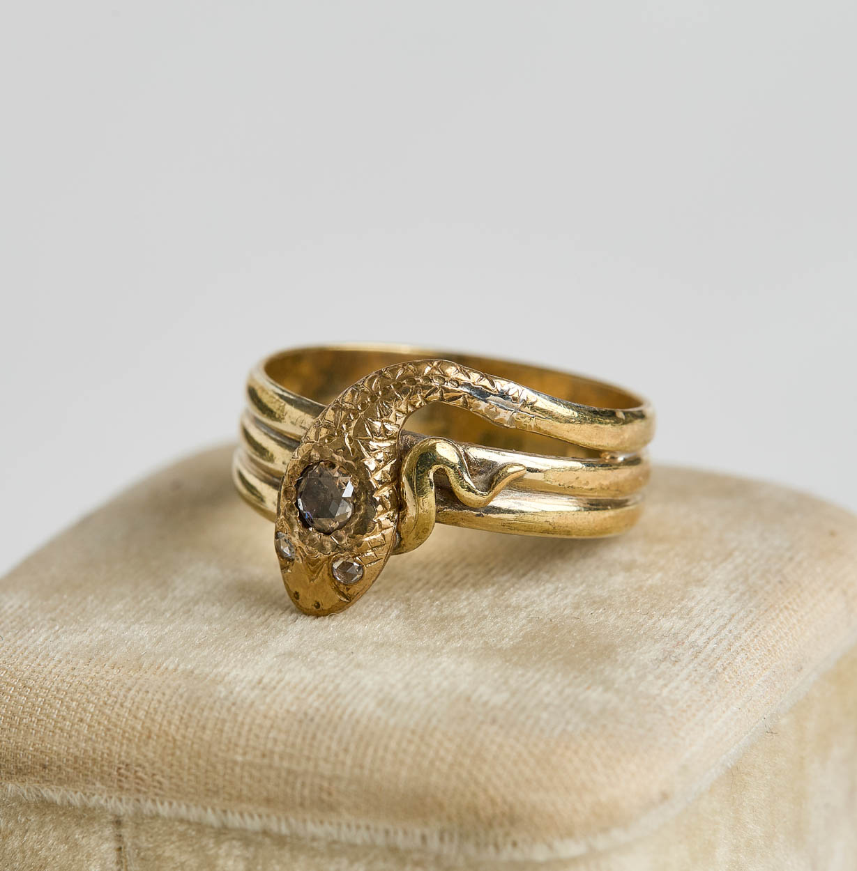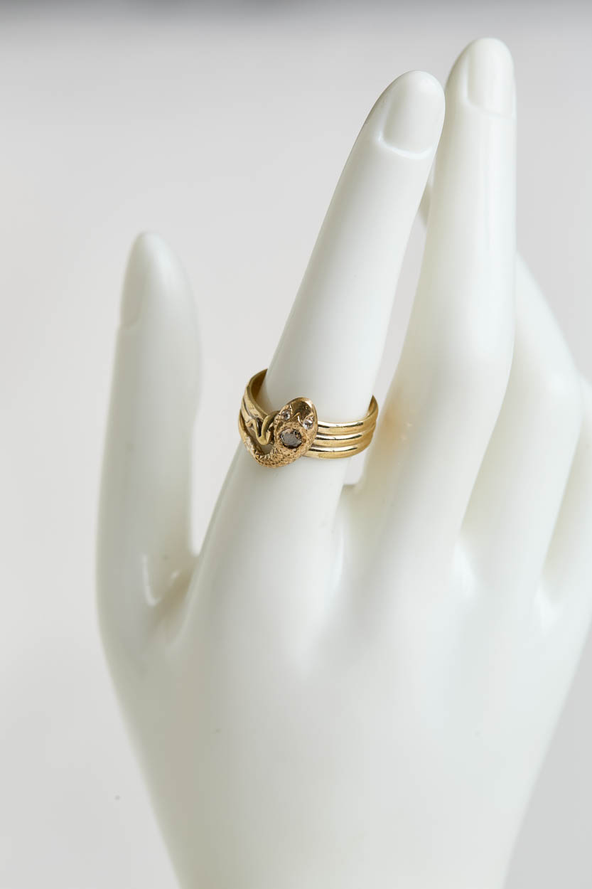 Beautiful Victorian gold-filled snake ring with a diamond eye.