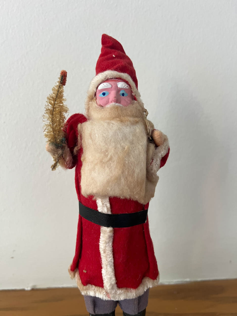 Rare, large vintage Occupied Japan clay-faced santa figurine with composition boots.