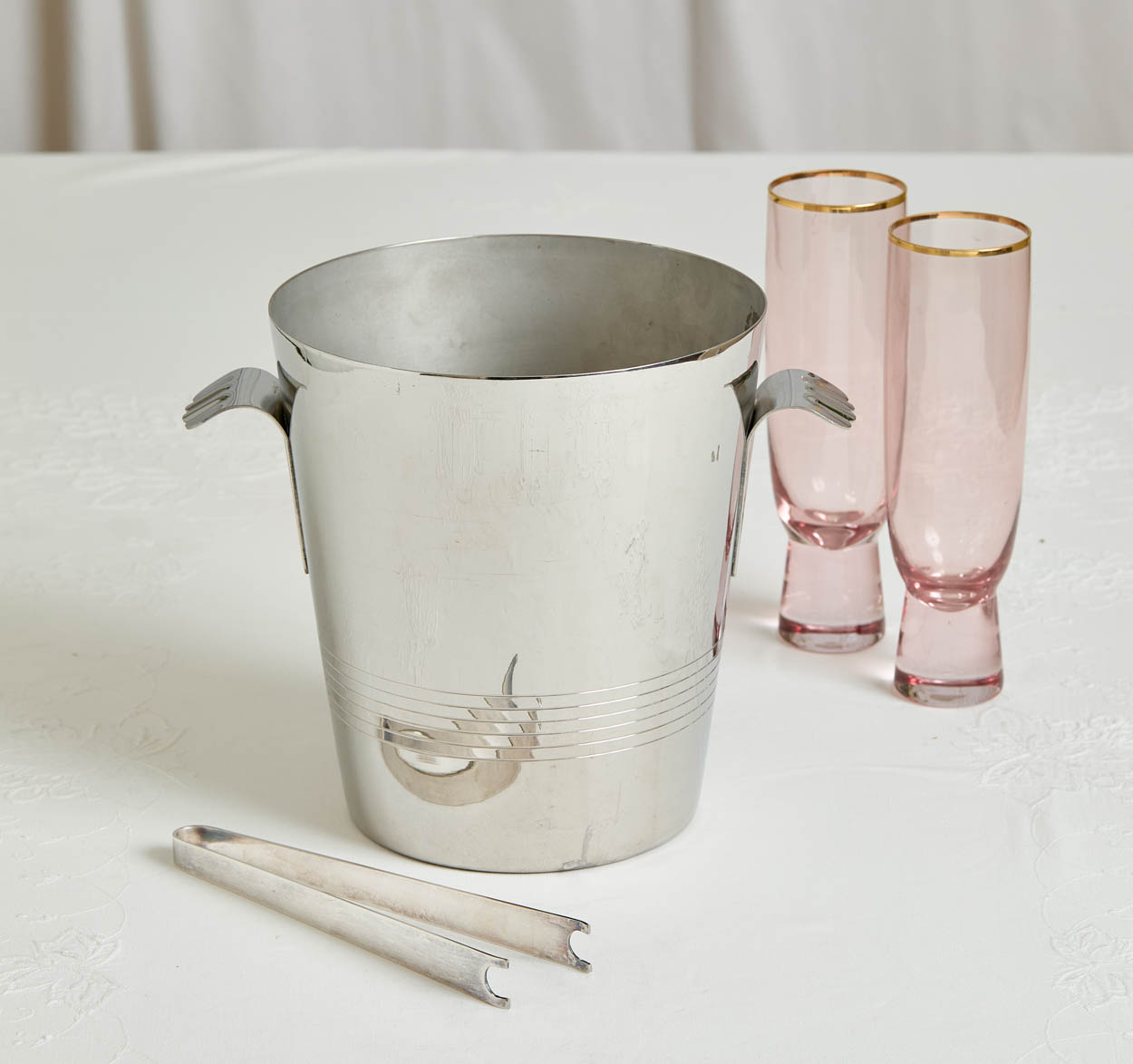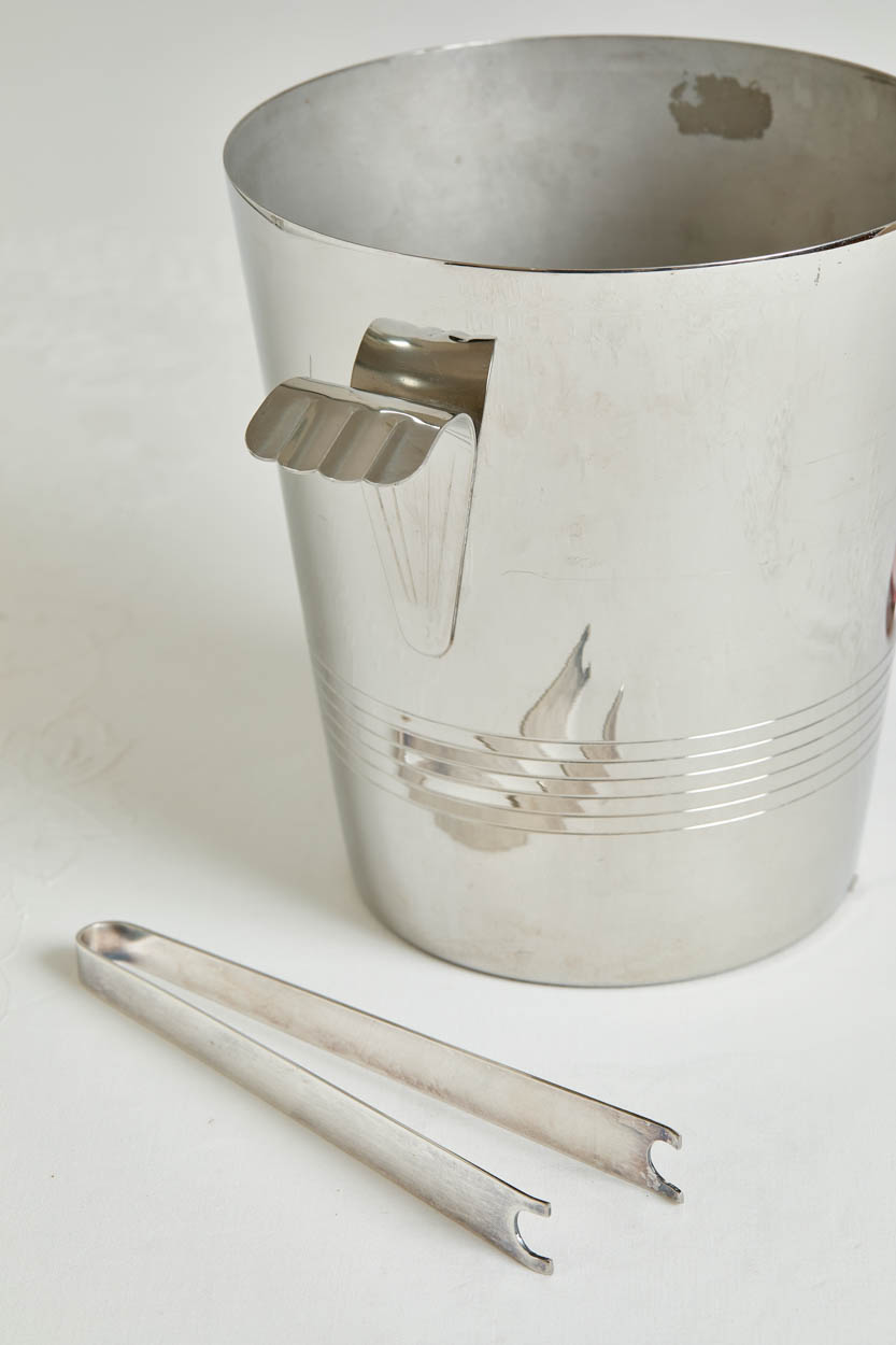 Vintage French Hotel Champagne Bucket & Christofle Ice Tongs