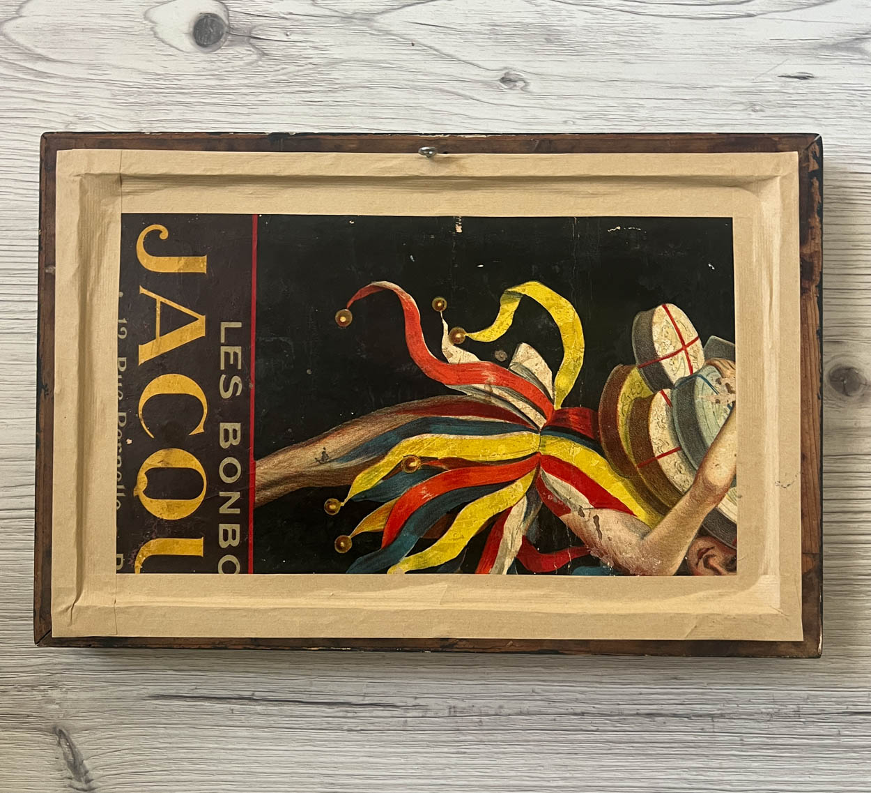 It is frame in a black and gilt wood frame that measures 17" long by 11" wide and 1-1/2" deep. Unsigned.