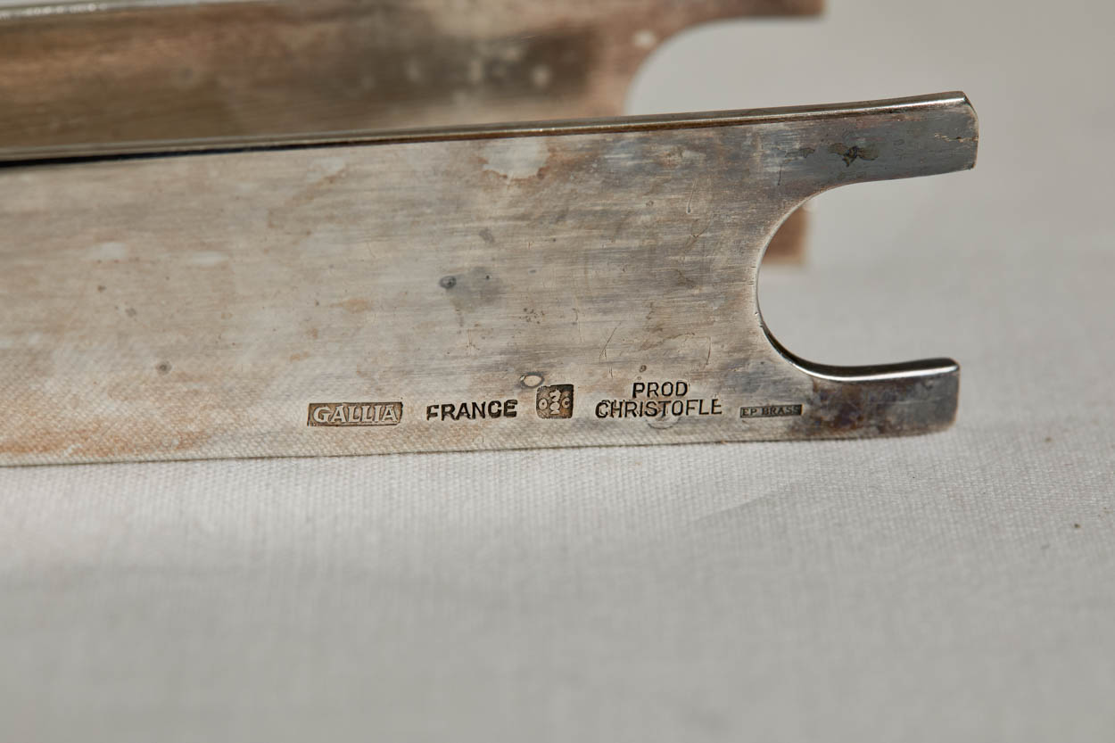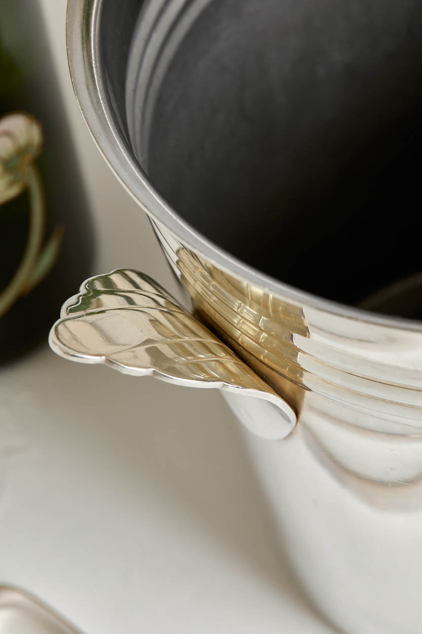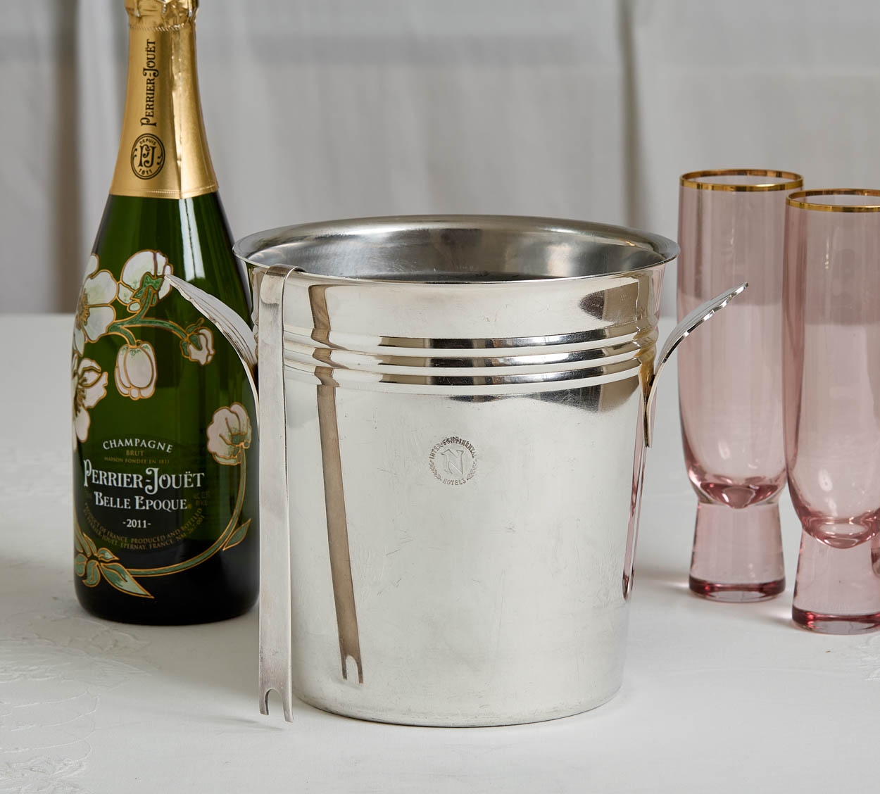 The bucket bears the hotel's name across the front. It is simple and elegant and includes a pair of silver plate Christofle ice tongs.