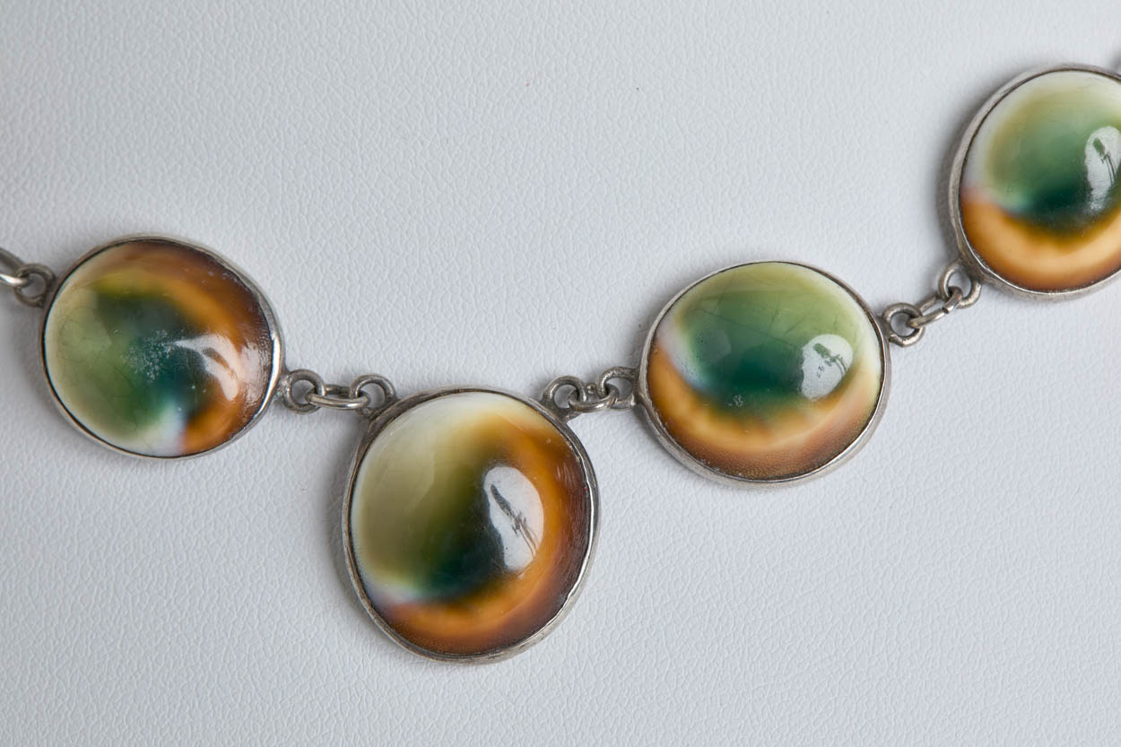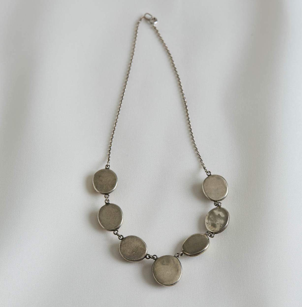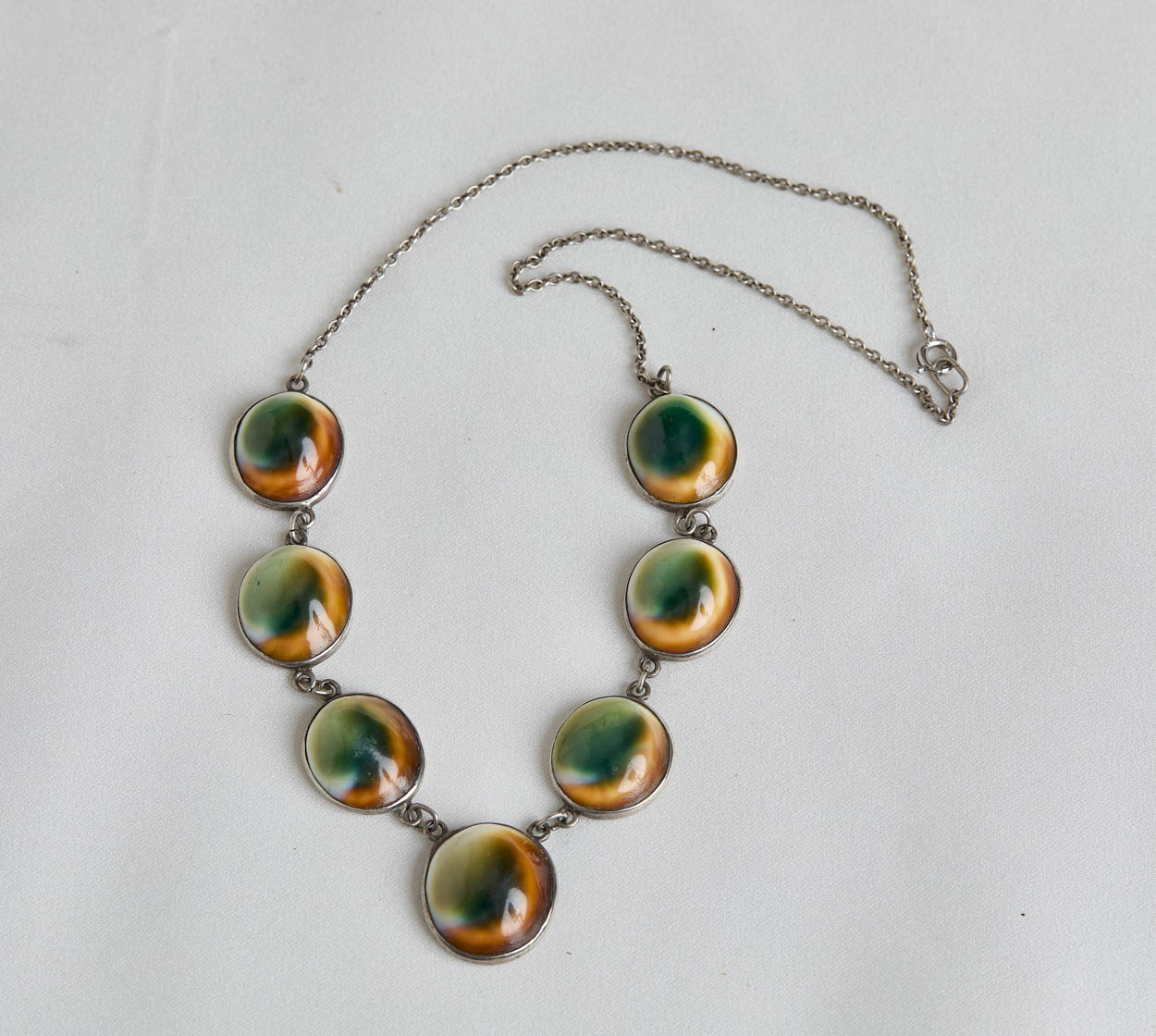 Beautiful early 1900s sterling silver operculum shell necklace.